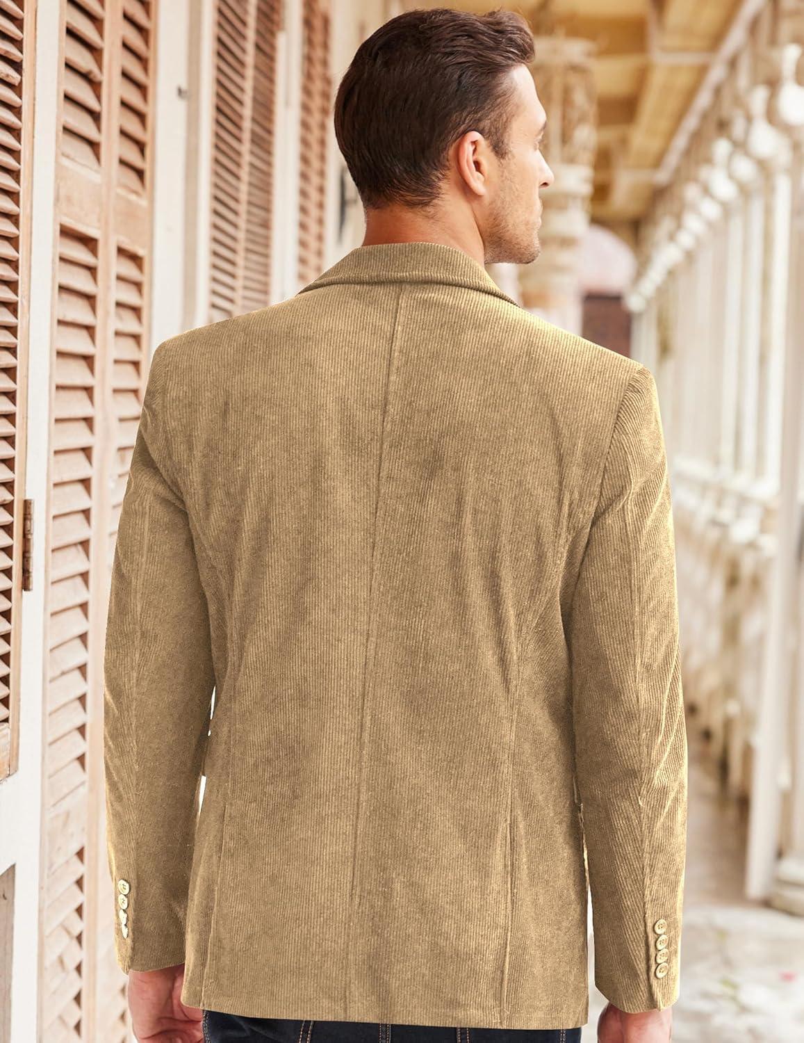 COOFADNY Men's Casual Corduroy Blazer Classic Fit Two Button Sport Coat Fashion Notch Lapel Blazer Jacket(Coffee)