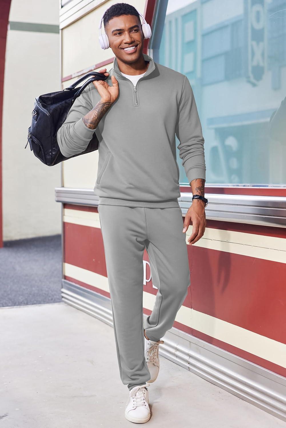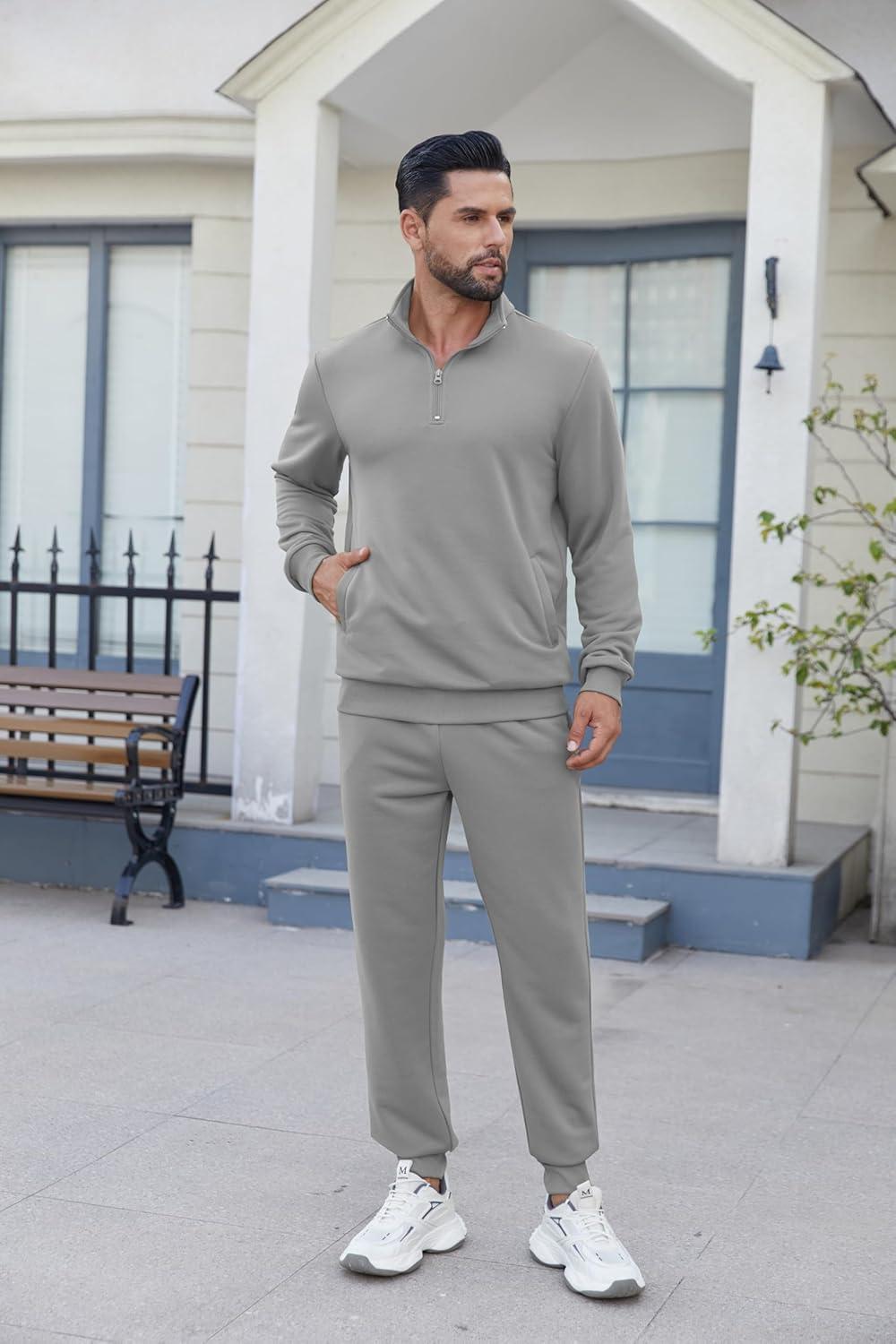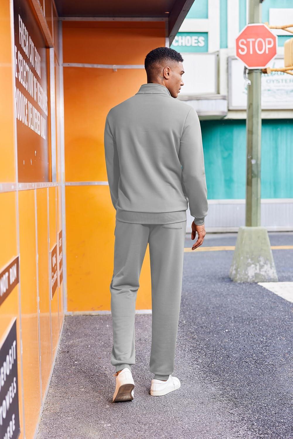 COOFANDY 2 Piece Set for Men Casual 1/4 Zip Track Suits Set Long Sleeve Quarter Pullover Jogging Suits 2025 Fashion Outfits(Light Grey)