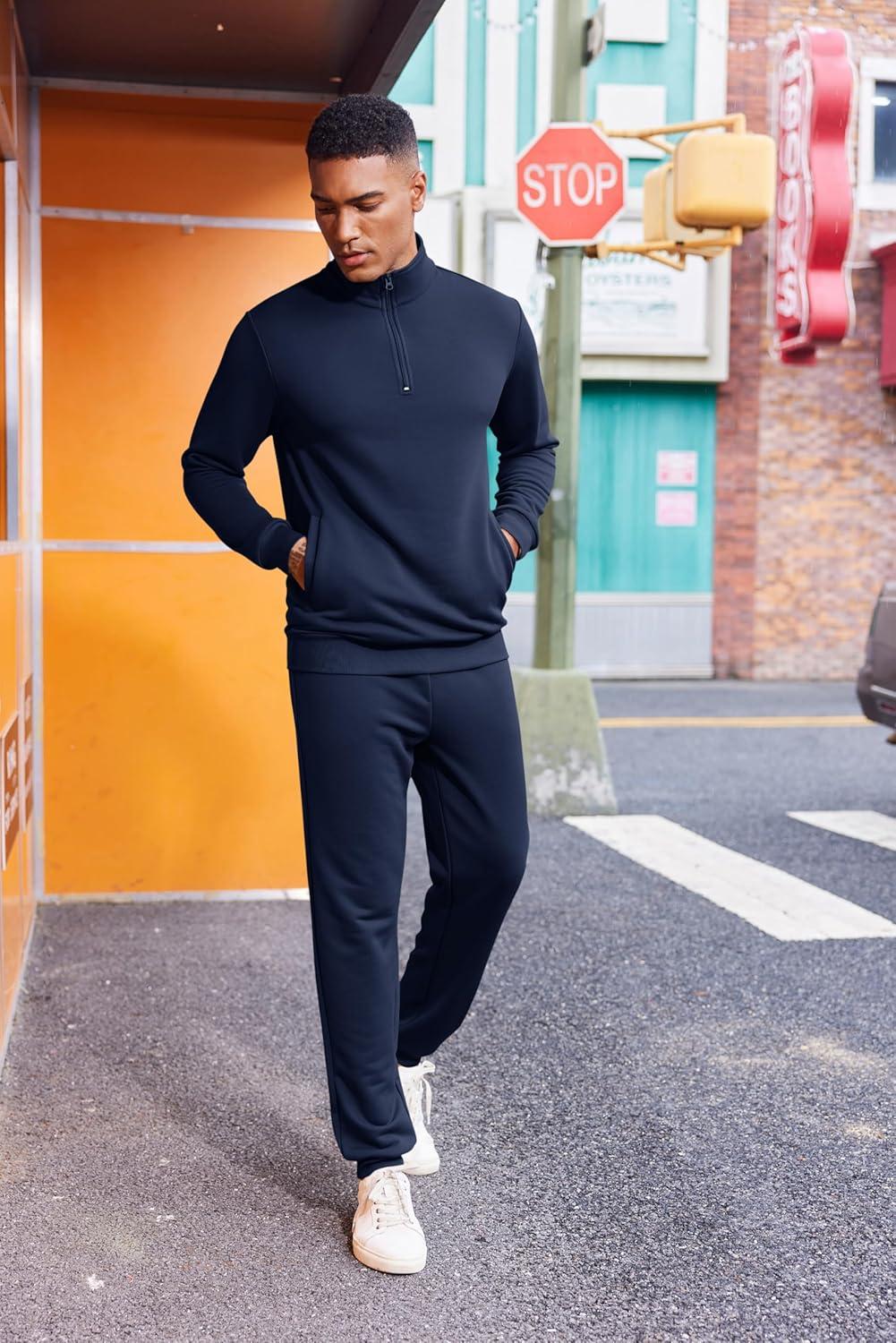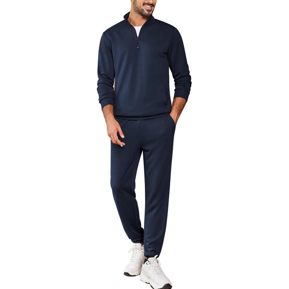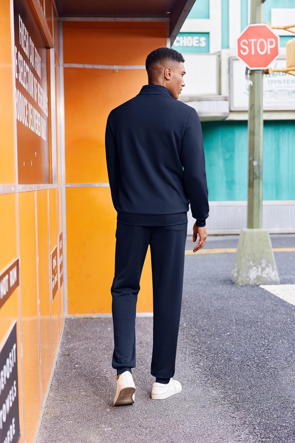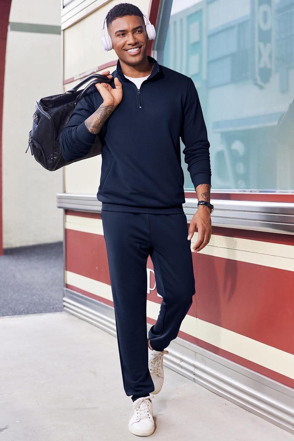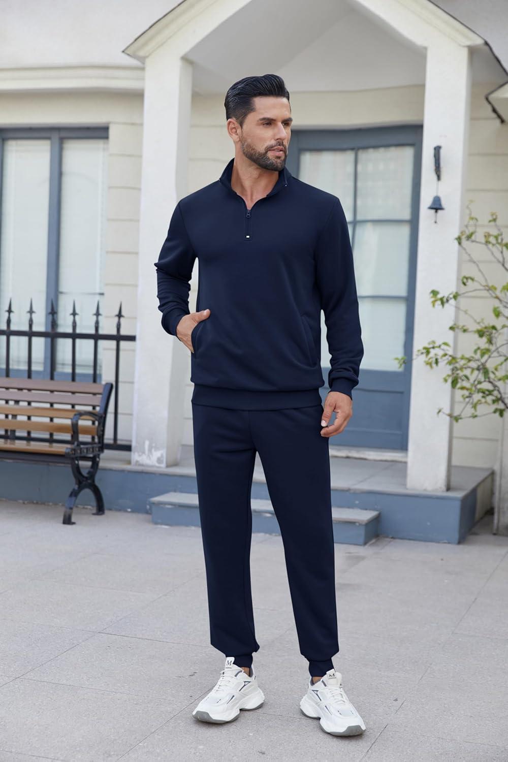 COOFANDY 2 Piece Set for Men Casual 1/4 Zip Track Suits Set Long Sleeve Quarter Pullover Jogging Suits 2025 Fashion Outfits(Navy Blue)