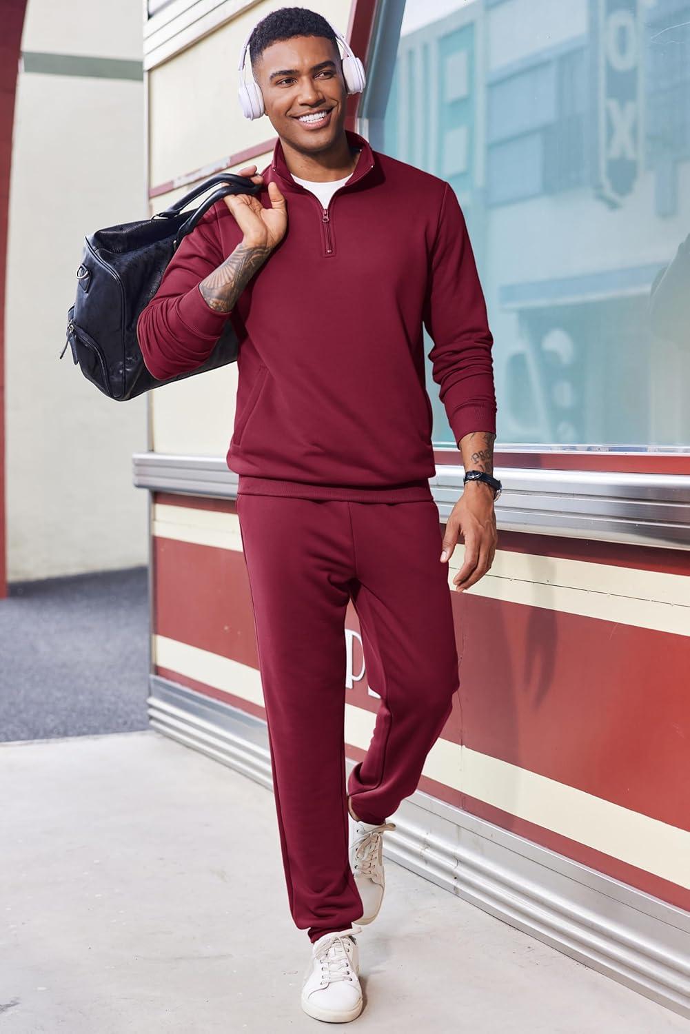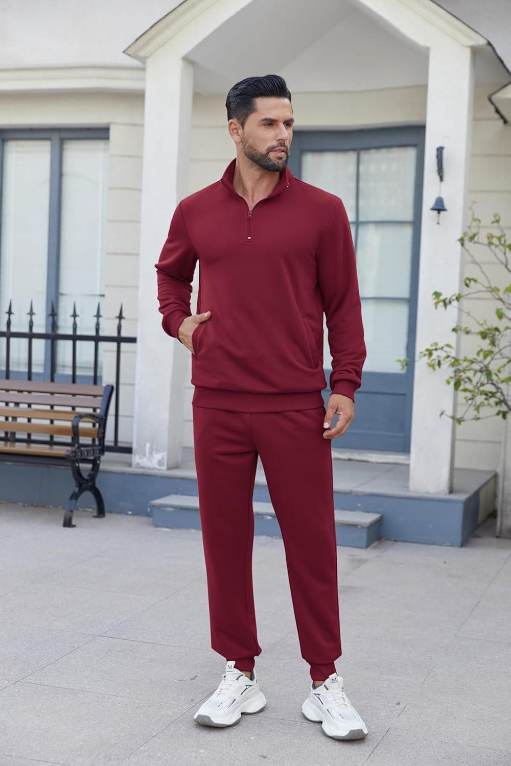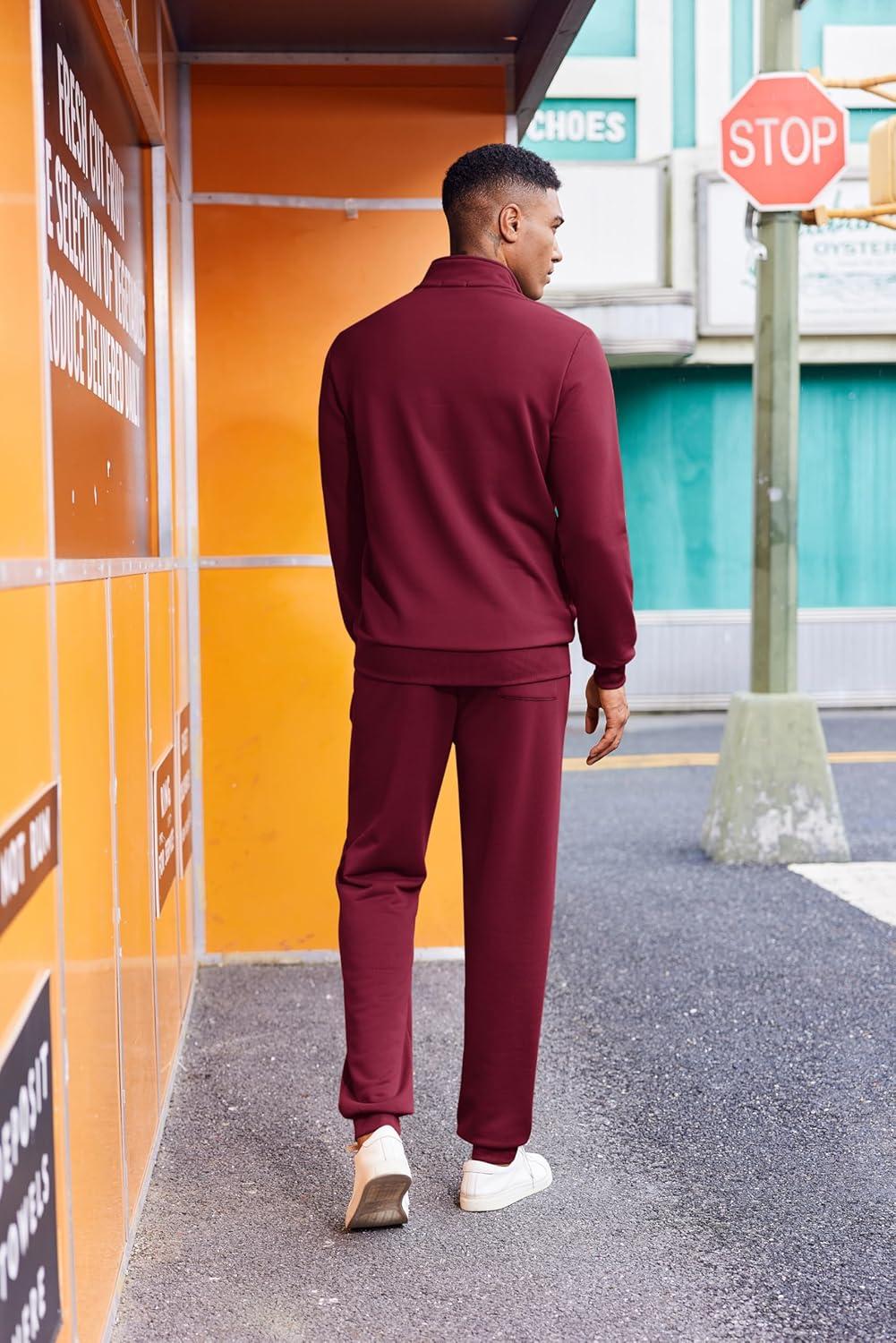 COOFANDY 2 Piece Set for Men Casual 1/4 Zip Track Suits Set Long Sleeve Quarter Pullover Jogging Suits 2025 Fashion Outfits(Wine Red)