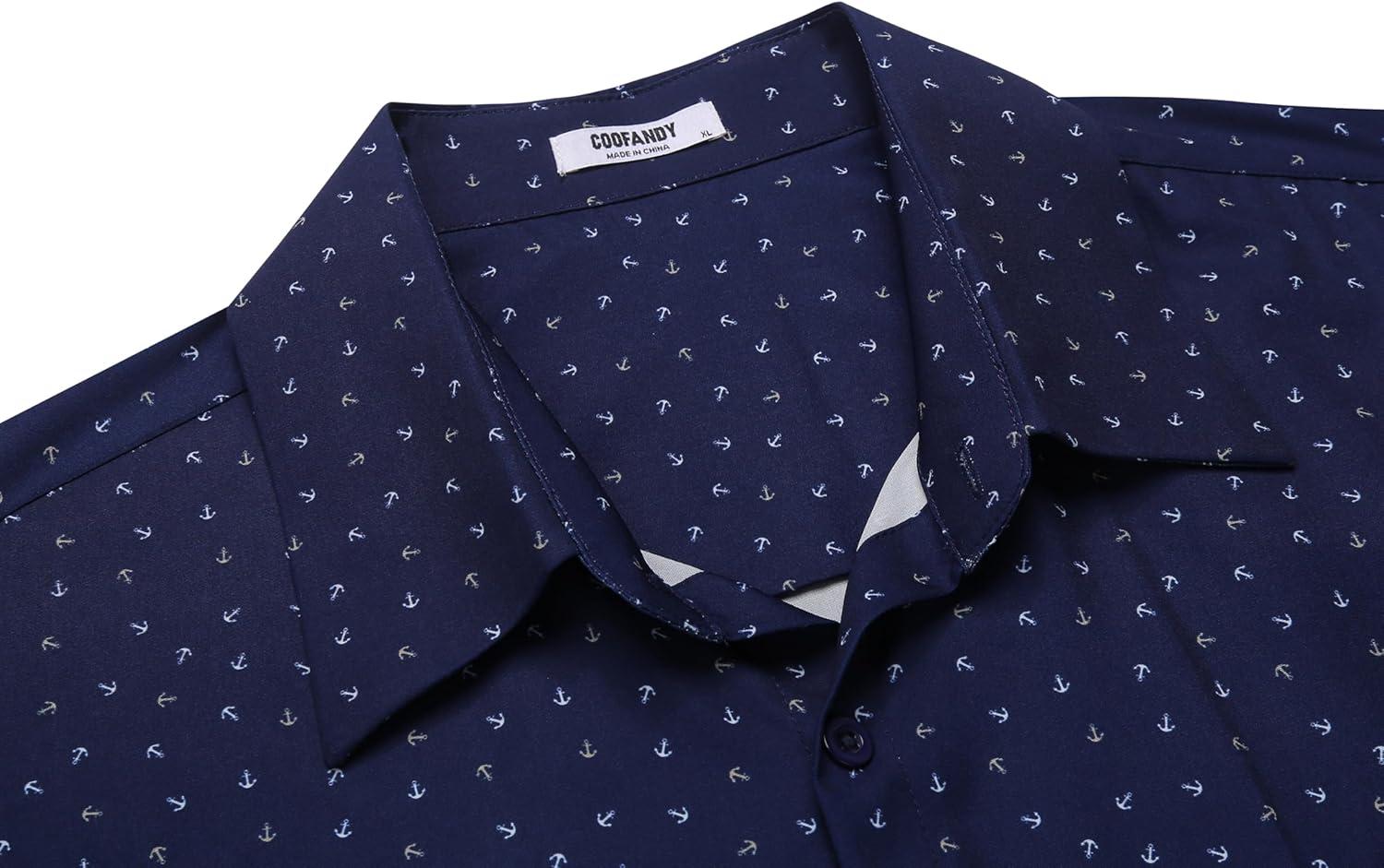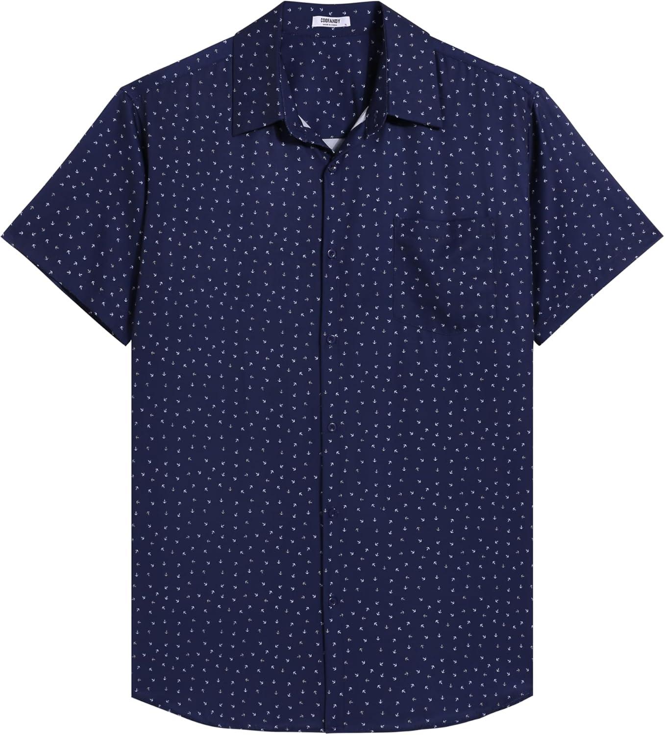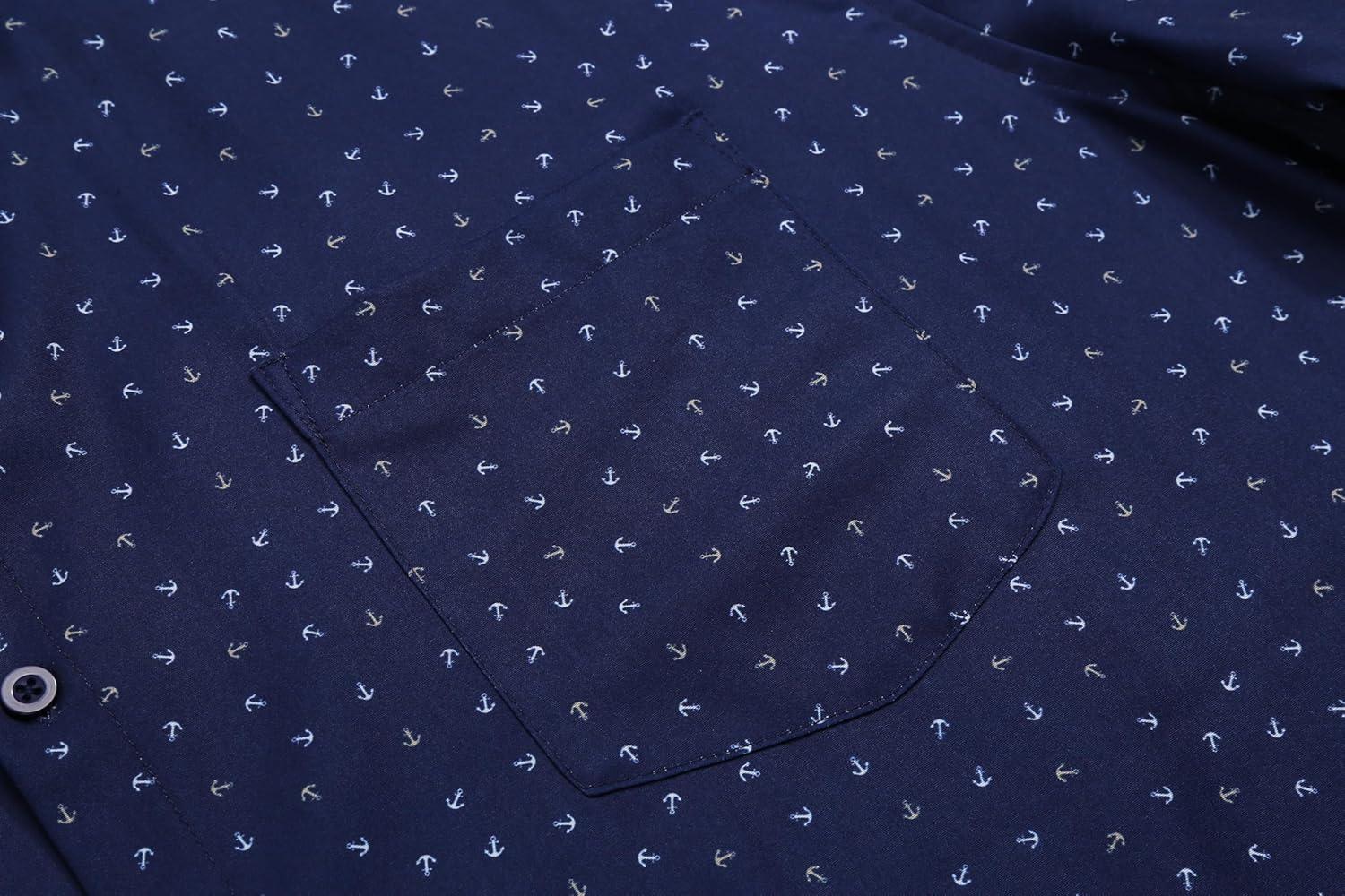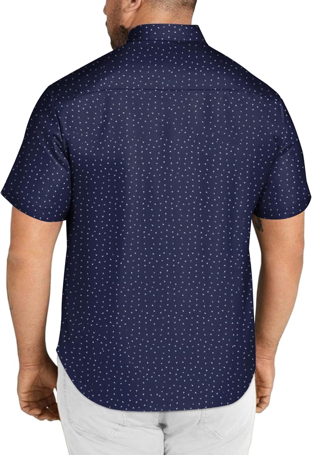 COOFANDY Big & Tall Dress Shirts for Men Short Sleeve Button Down Casual Shirts(Navy – Anchor Pattern)