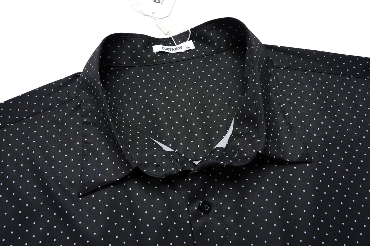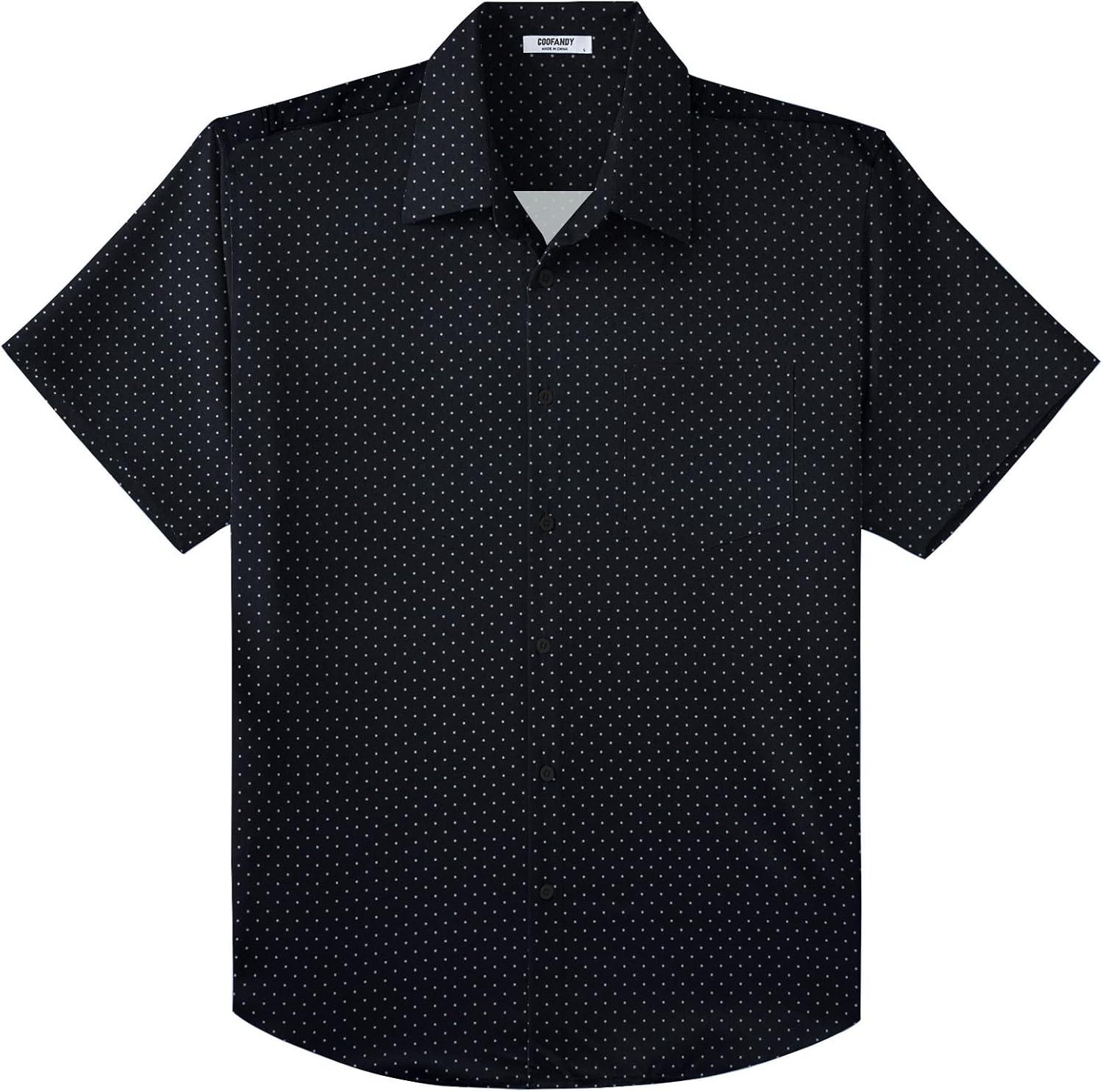 COOFANDY Big & Tall Shirts for Men Short Sleeve Button Down Casual Dress Shirts(Black-polka Dots)