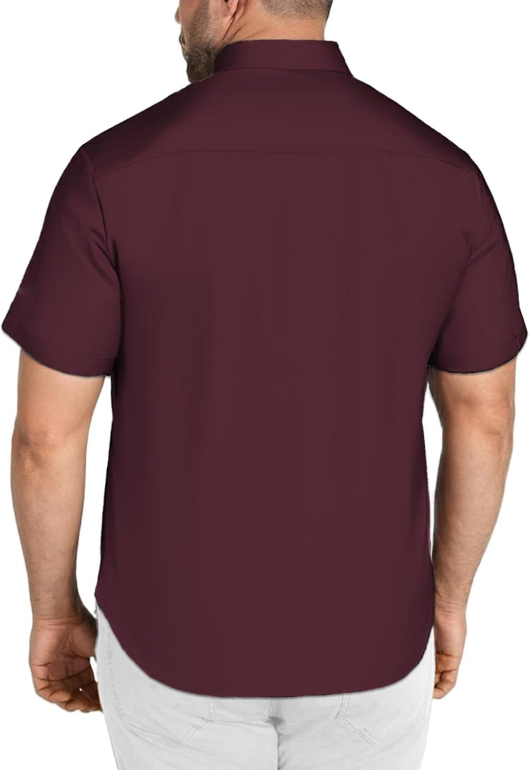 COOFANDY Big & Tall Shirts for Men Short Sleeve Button Down Casual Dress Shirts(Deep Red)