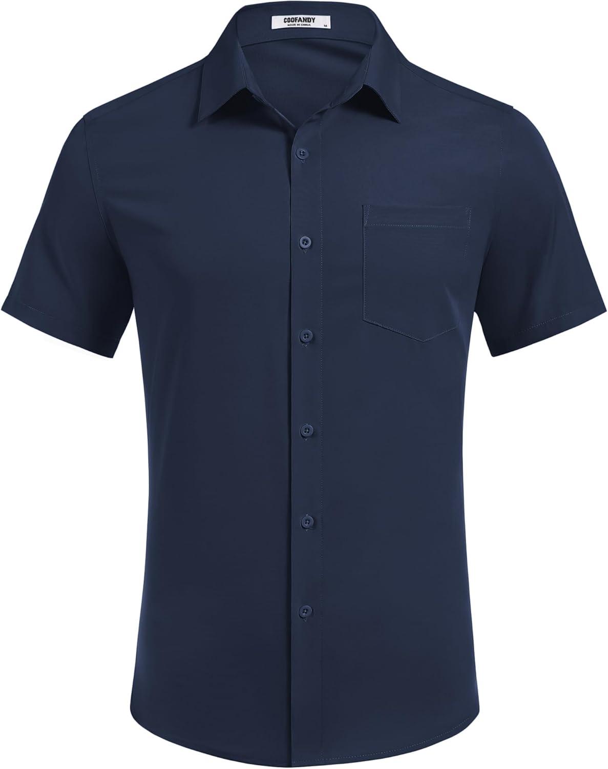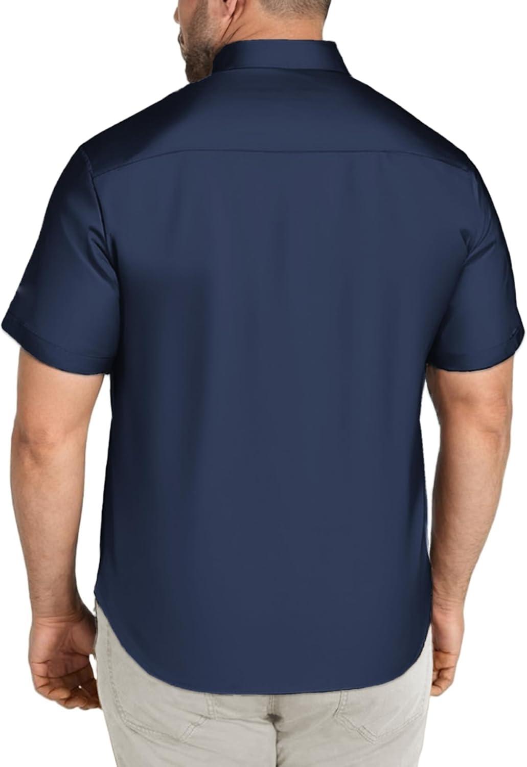 COOFANDY Big & Tall Shirts for Men Short Sleeve Button Down Casual Dress Shirts(Navy Blue)