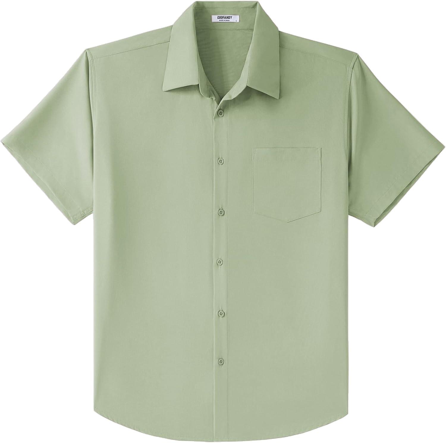 COOFANDY Big & Tall Shirts for Men Short Sleeve Button Down Casual Dress Shirts(Sage Green)