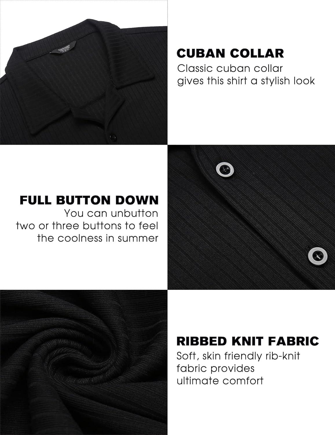 COOFANDY Brown Button Up Shirt Men Knitted Polo Shirts Cuban Beach Shirts Button Down Polo Shirt