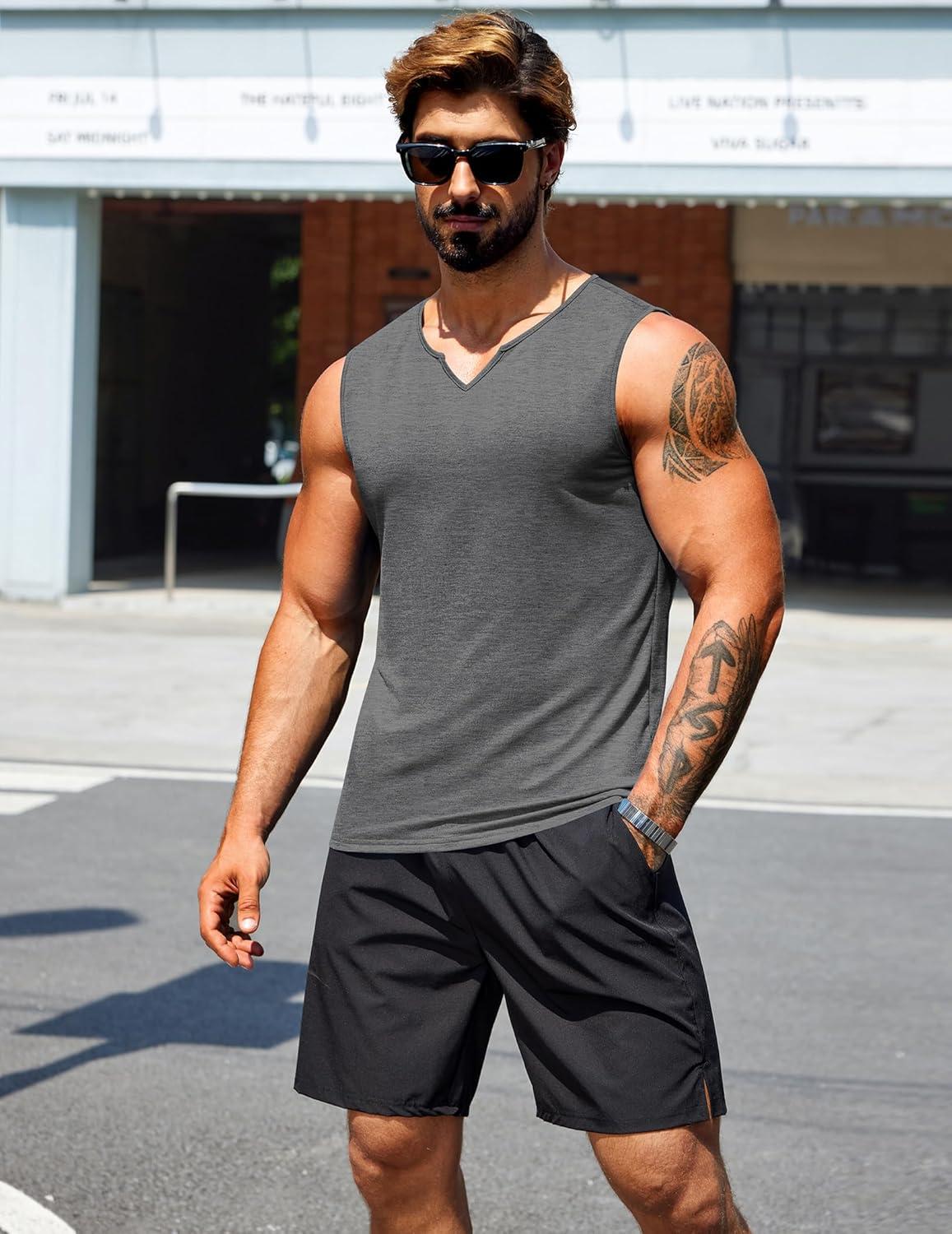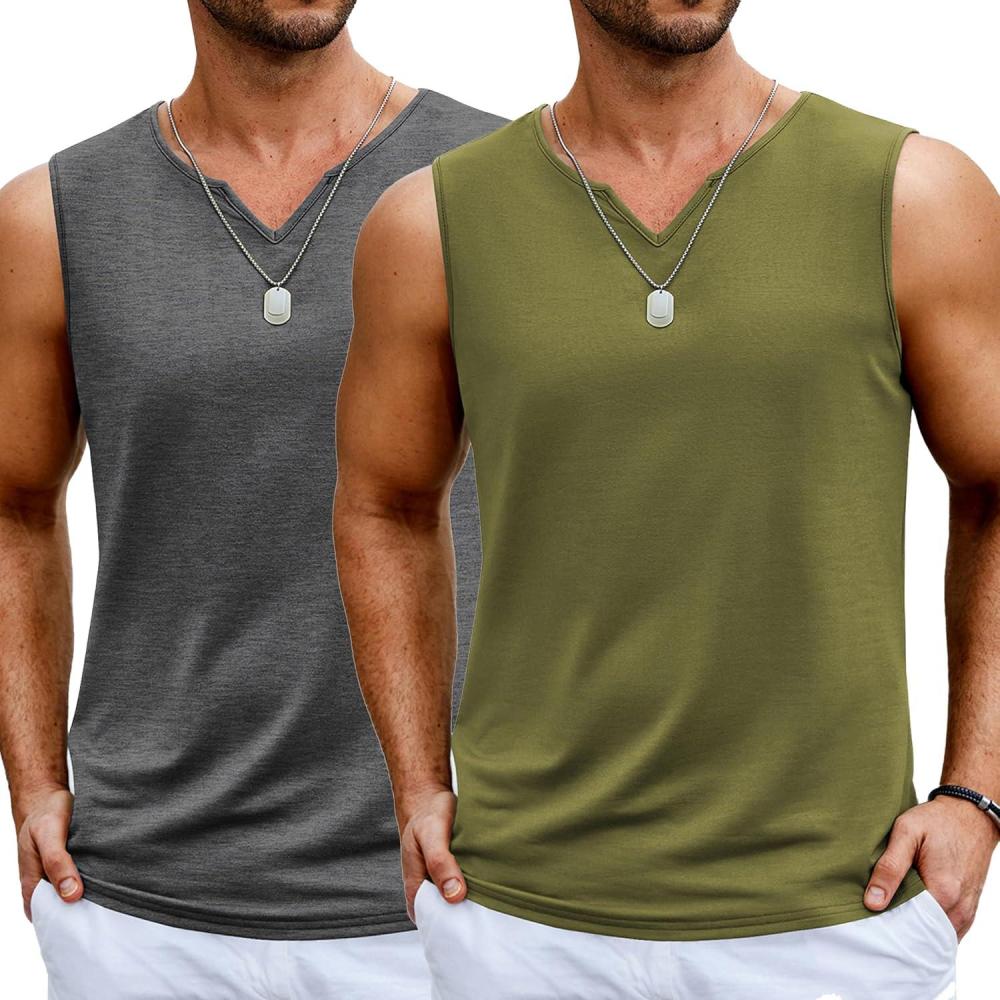 COOFANDY Casual Sleeveless Shirts for Men Cotton V Neck Tank Tops Summer 2 Pack Workout Gym Muscle Tee(Army Green/Dark Gray)