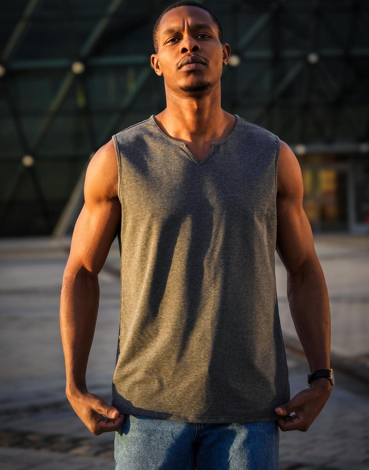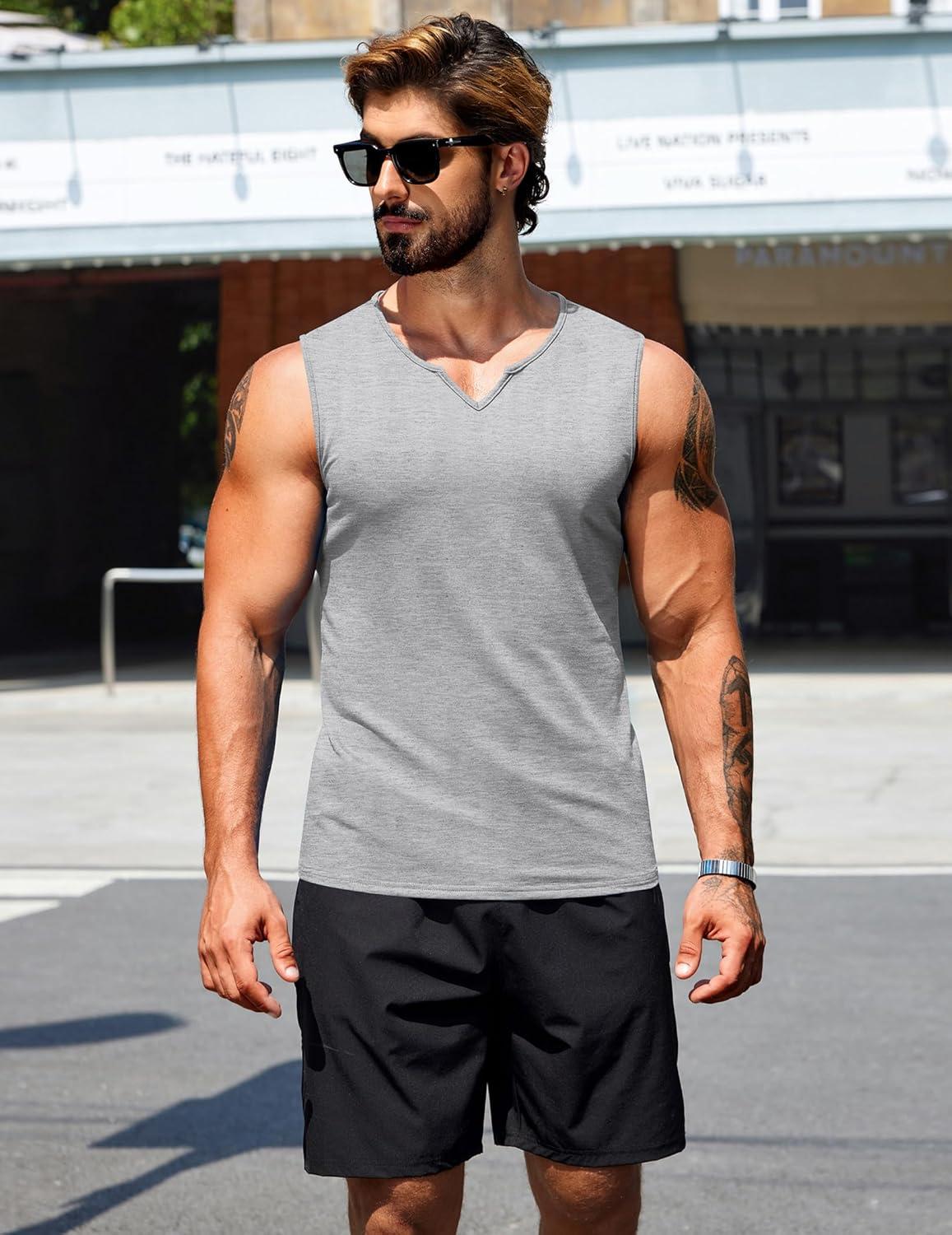 COOFANDY Casual Sleeveless Shirts for Men Cotton V Neck Tank Tops Summer 2 Pack Workout Gym Muscle Tee(Light Gray)