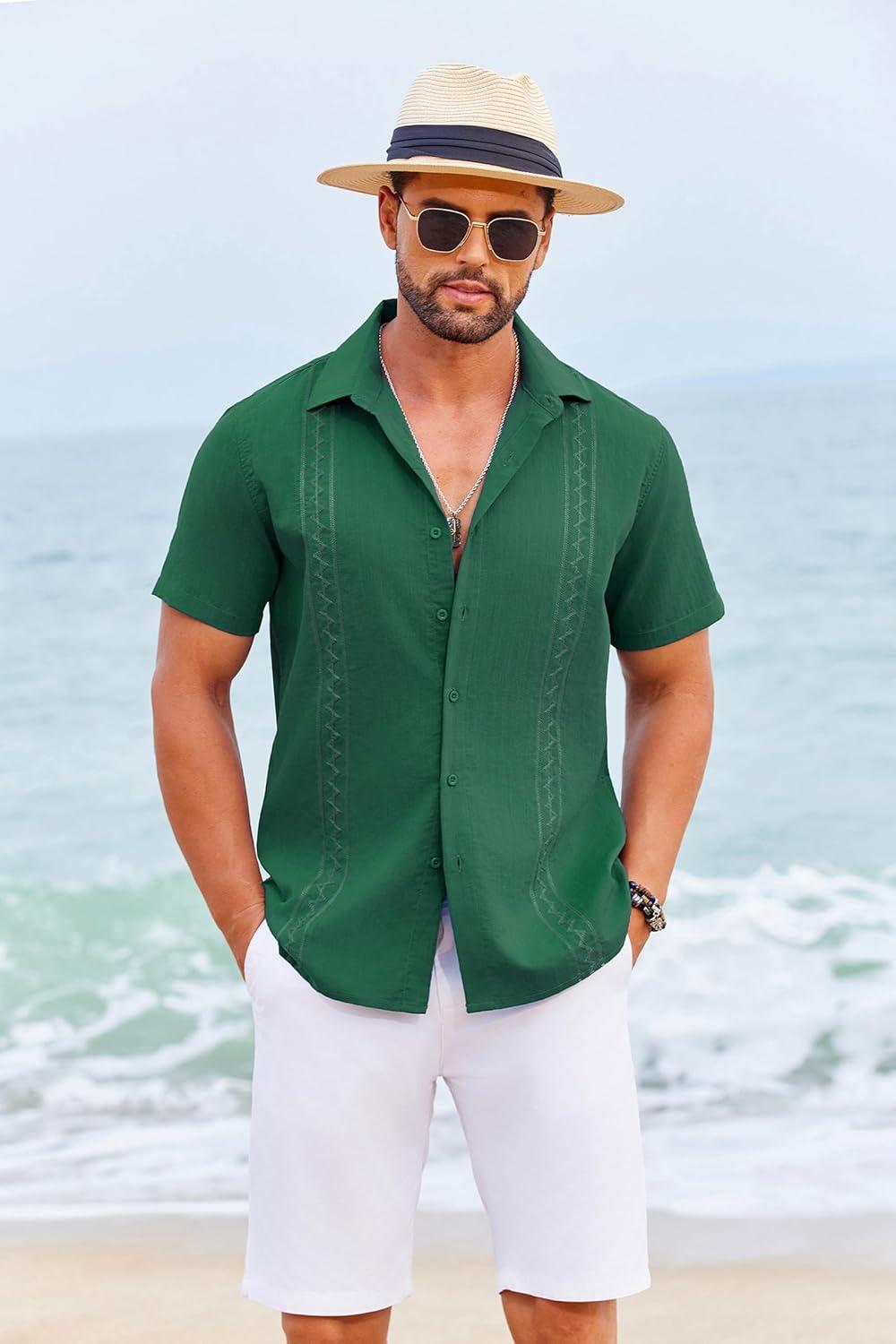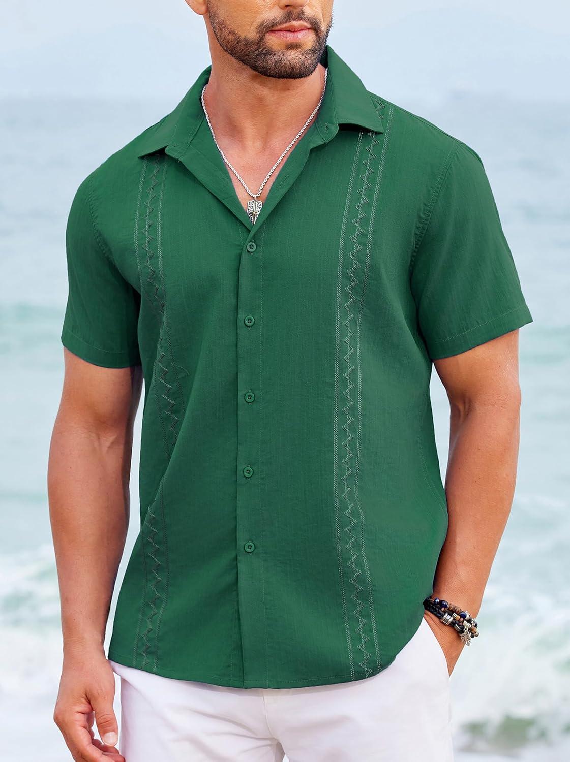 Get your hands on our exclusive COOFANDY Cuban Guayabera Shirts for Men Short Sleeve Casual Button Down Shirts Summer Vacation Shirts(Forest Green) collection, now at a discounted price.