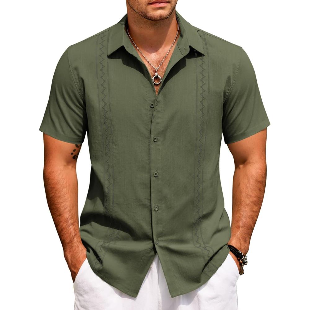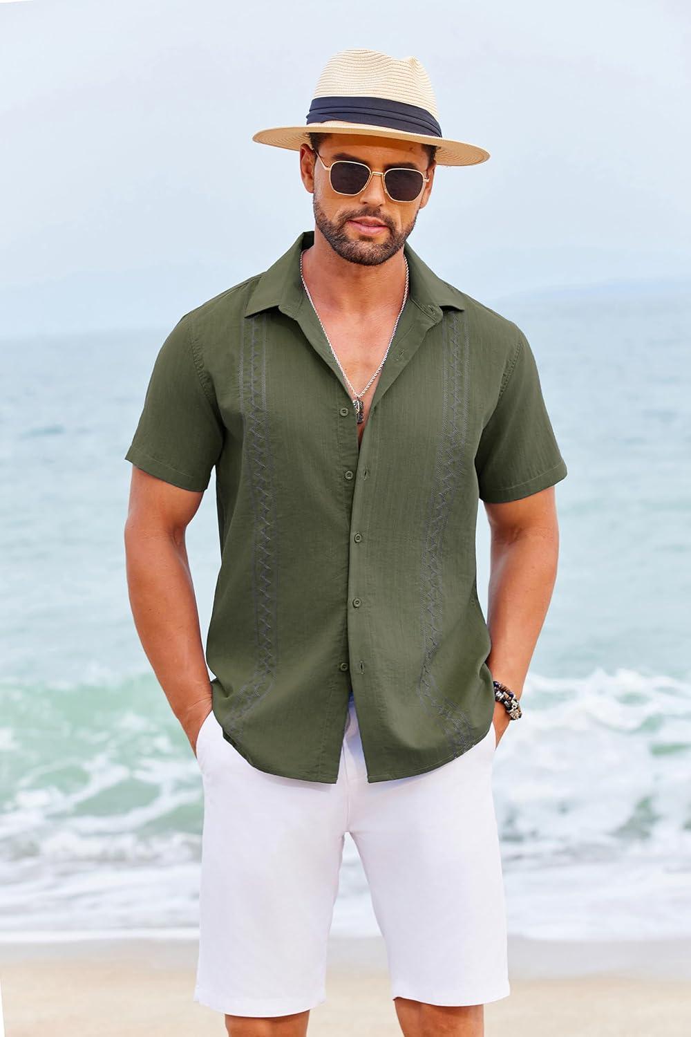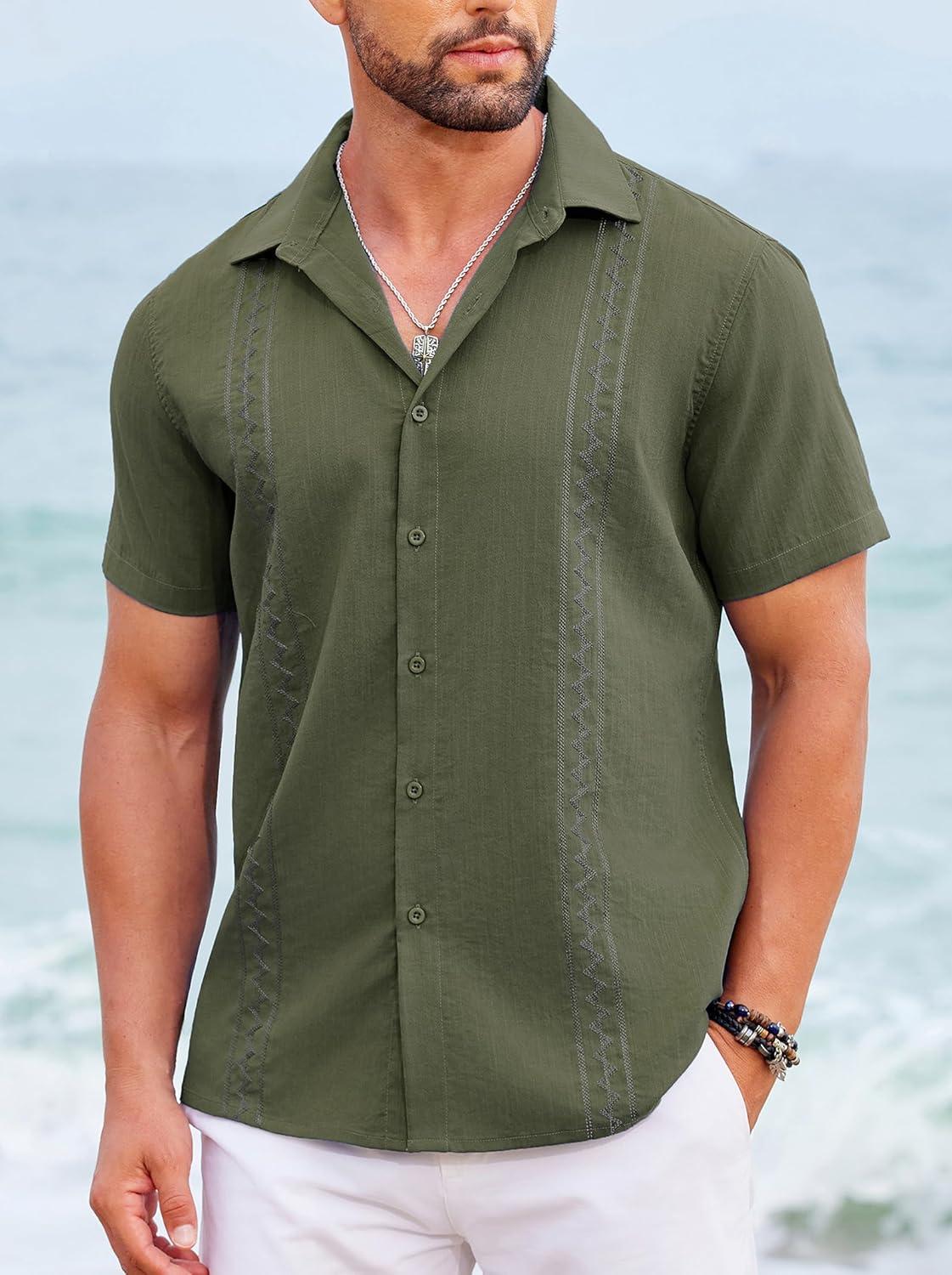 COOFANDY Cuban Guayabera Shirts for Men Short Sleeve Casual Button Down Shirts Summer Vacation Shirts(Olive Green)
