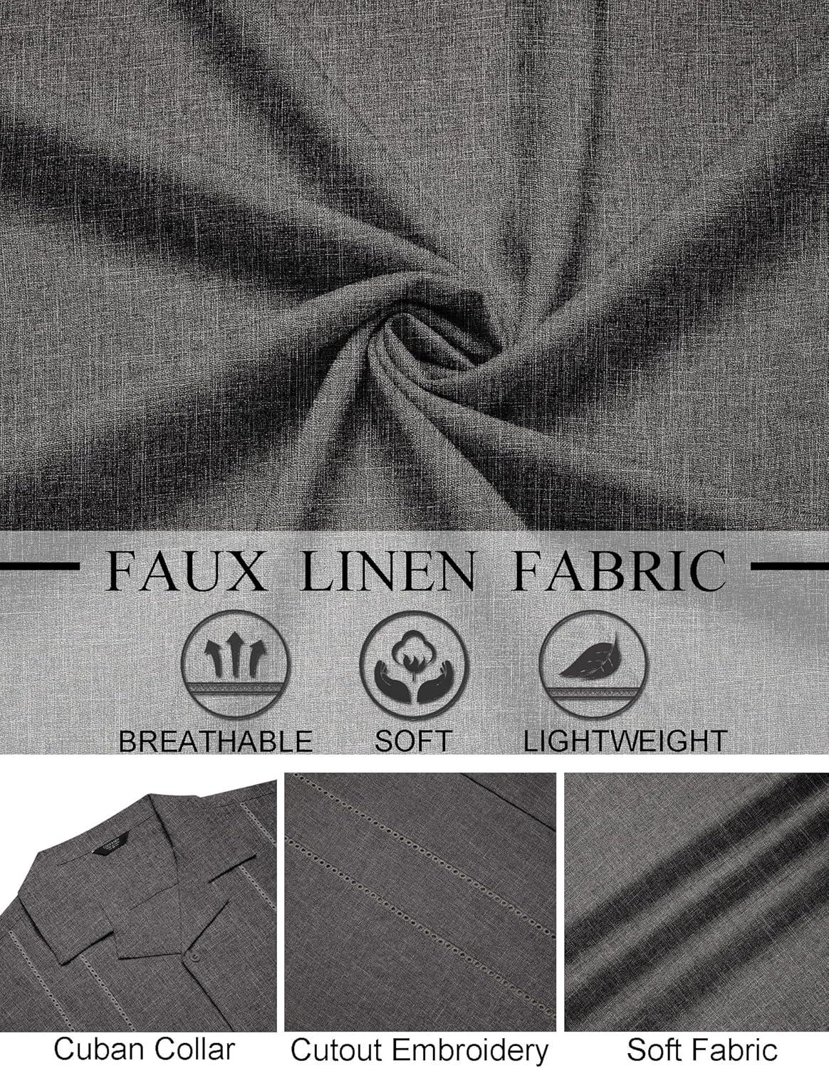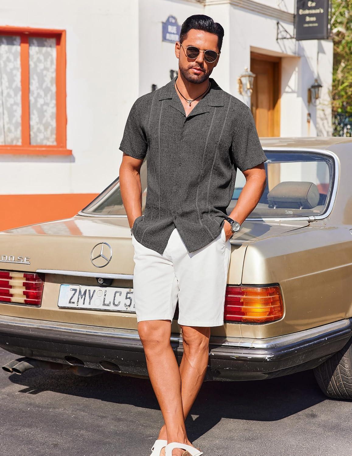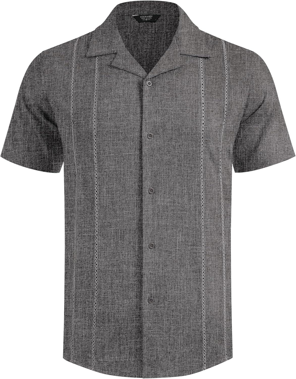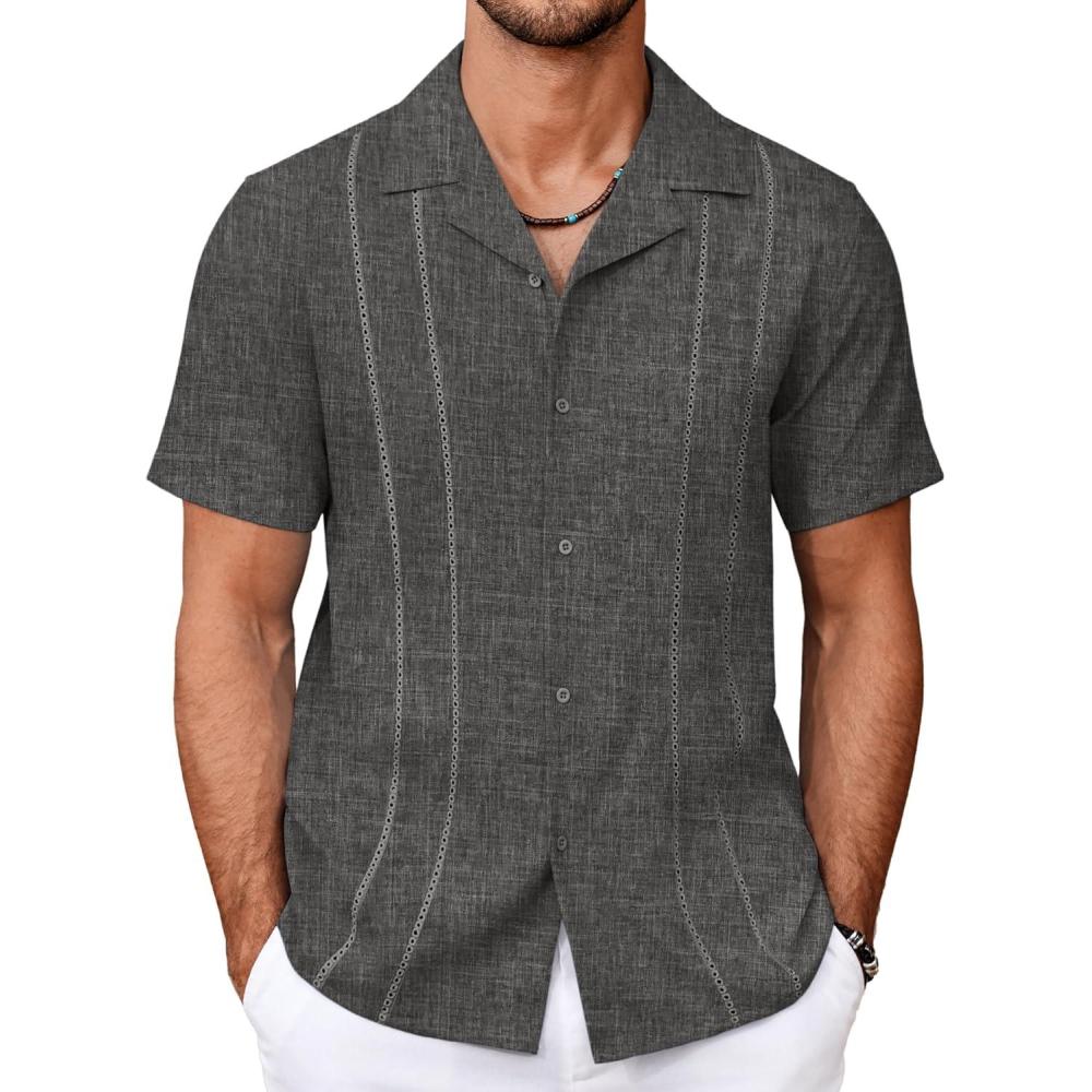 COOFANDY Guayabera Shirts for Men Cuban Short Sleeve Button Down Summer Shirts Linen Shirts(Dark Gray)