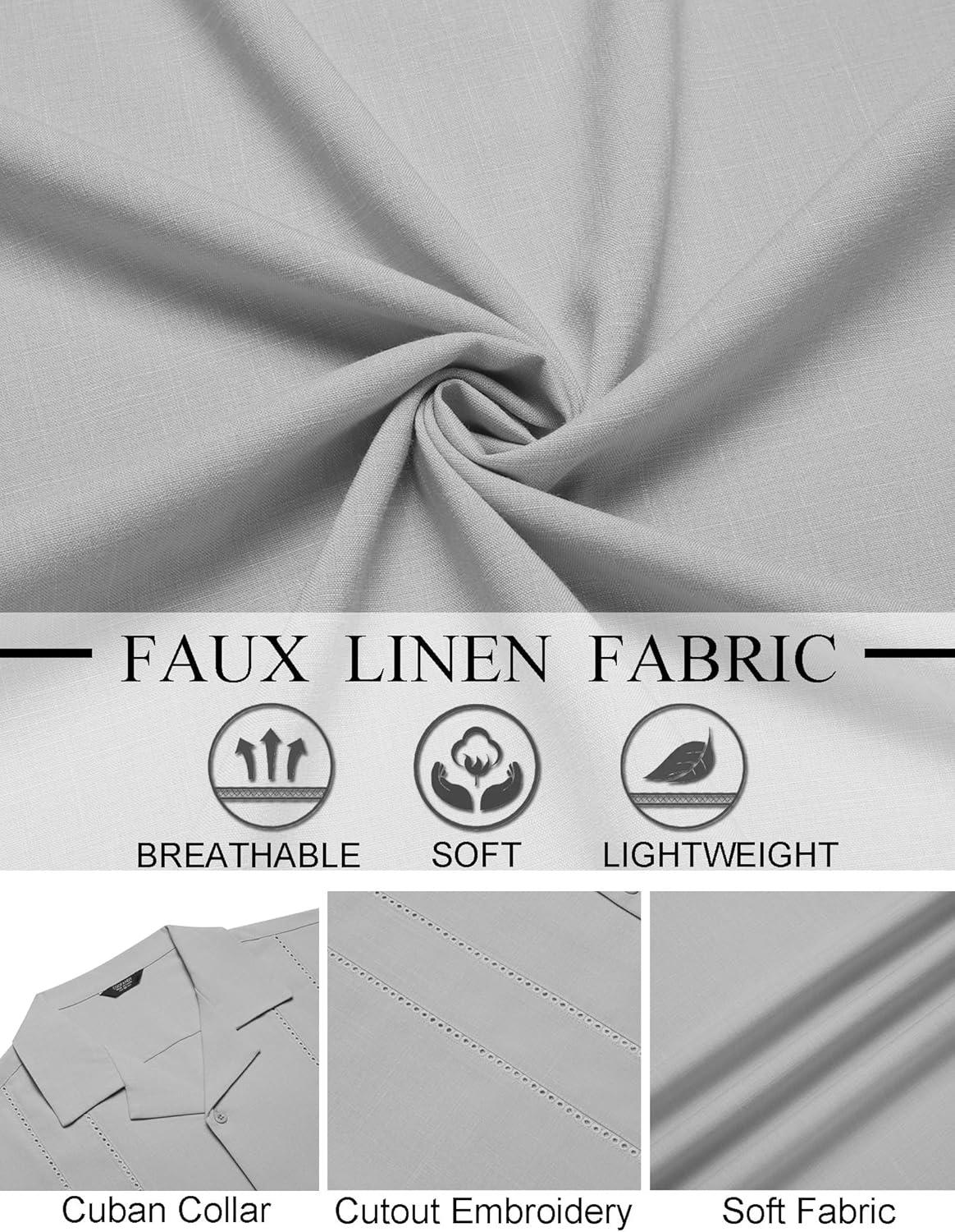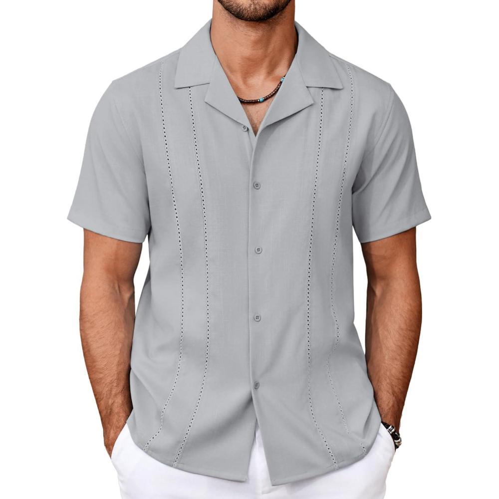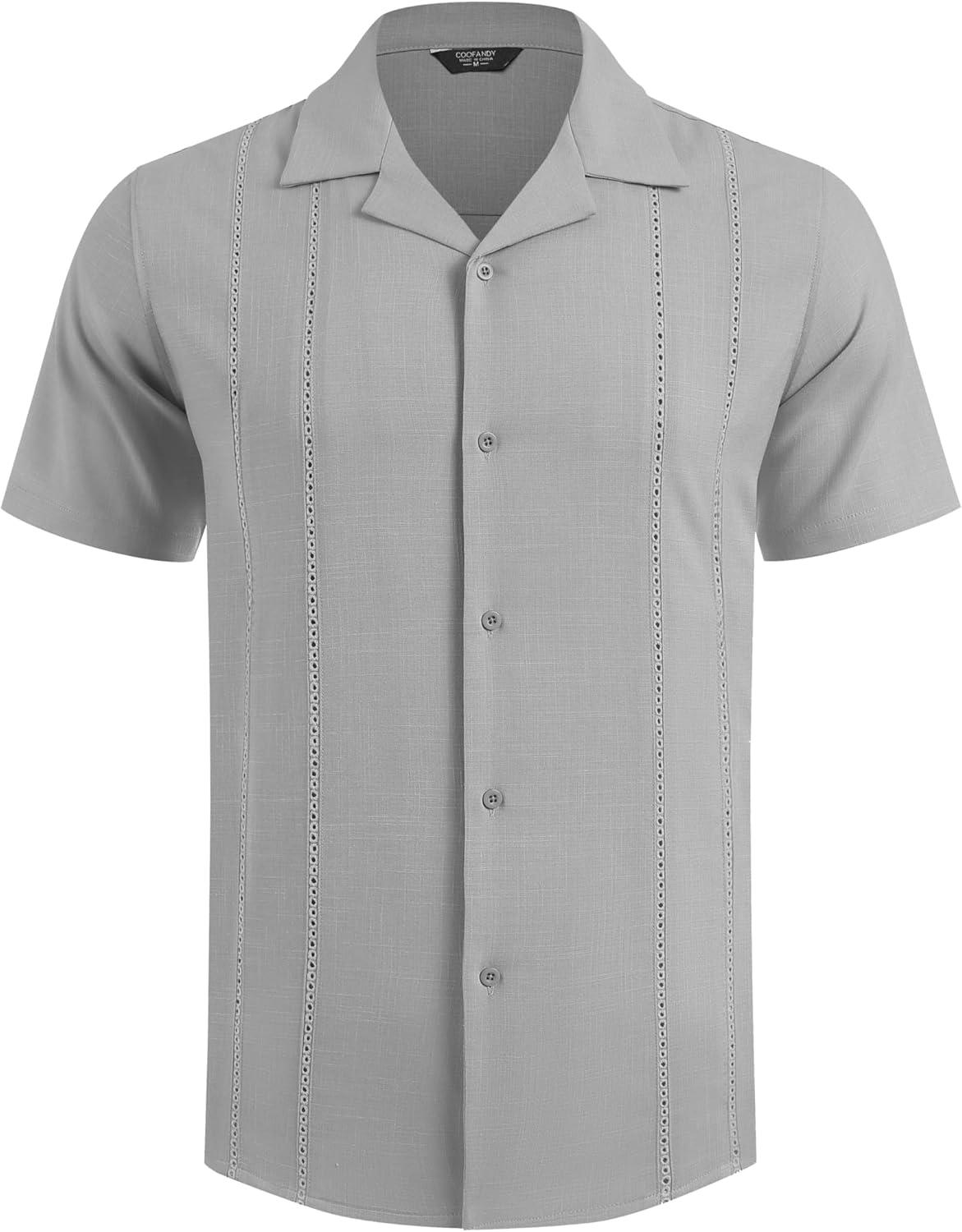 COOFANDY Guayabera Shirts for Men Cuban Short Sleeve Button Down Summer Shirts Linen Shirts(Light Gray)