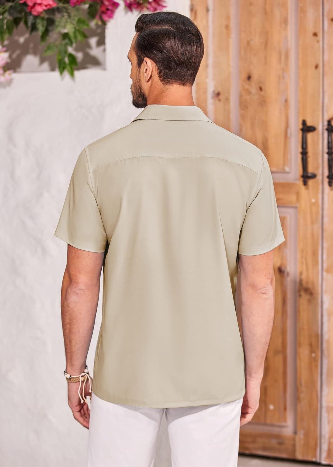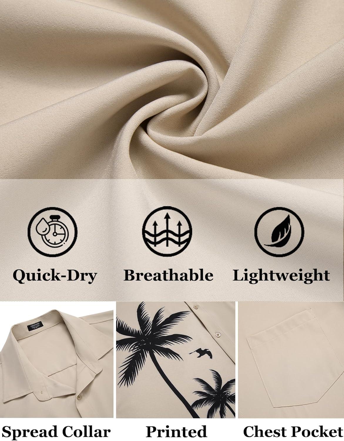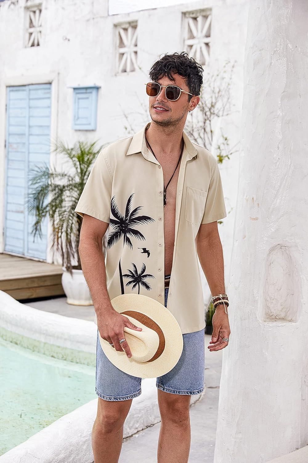 COOFANDY Hawaiian Short Button Sleeve Down Shirt Shirts Beach(Beige – Palm Tree)