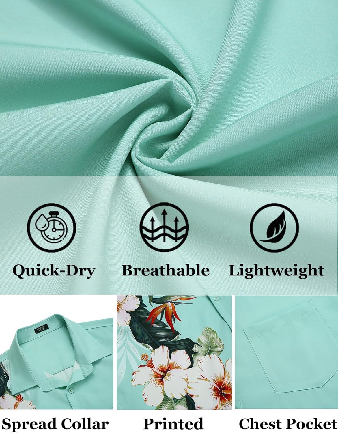 COOFANDY Hawaiian Short Button Sleeve Down Shirt Shirts Beach(Light Green – Floral)