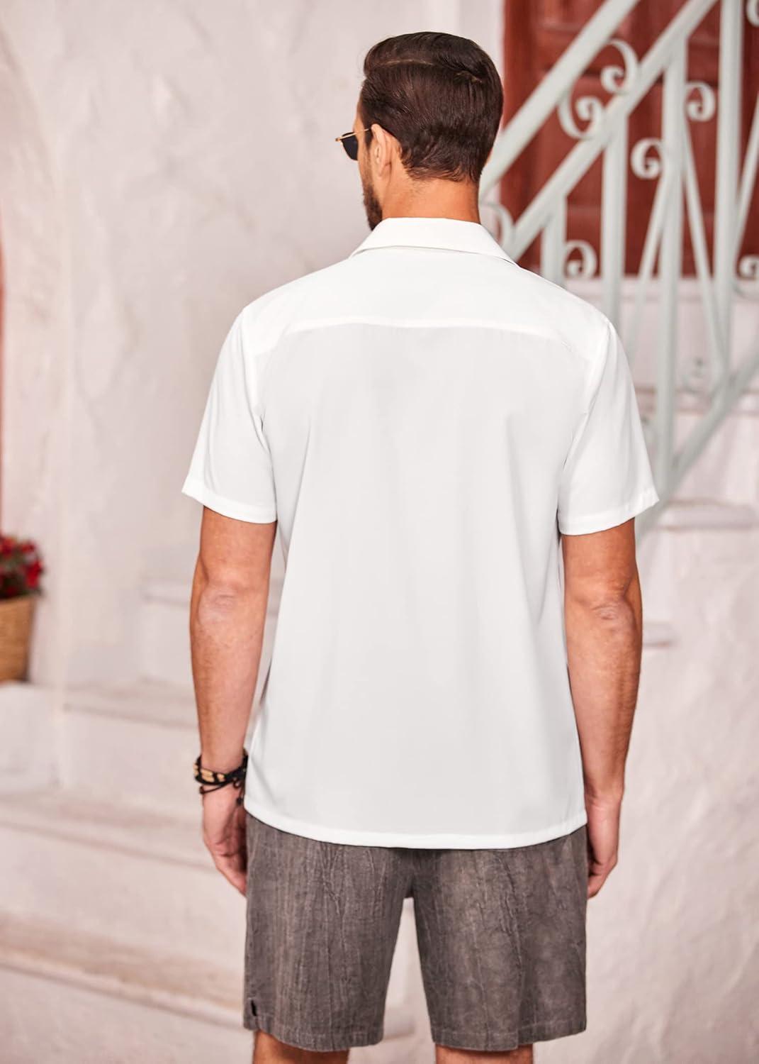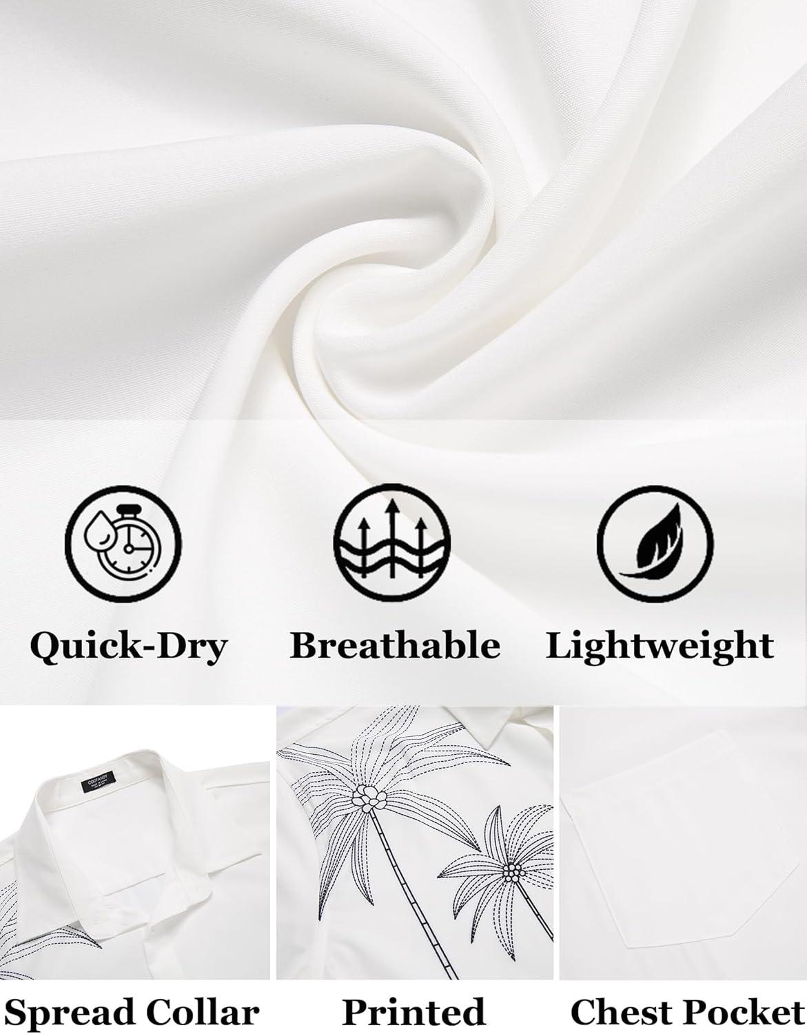 COOFANDY Hawaiian Short Button Sleeve Down Shirt Shirts Beach(White – Coconut Tree)