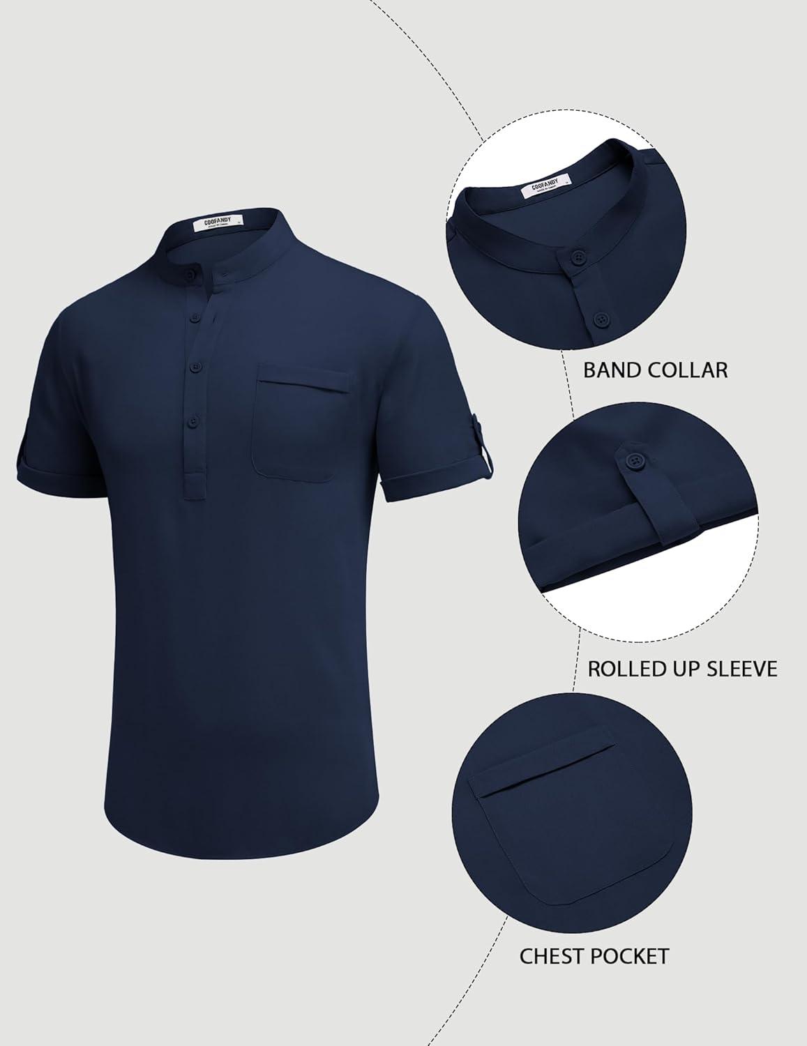 Our holiday sale features the best deals on COOFANDY Henley Shirts for Men Short Sleeve Band Collar Casual Shirt Summer Hippie Vacation Beach T Shirts with Pocket(Navy Blue) and accessories. Shop now and save!