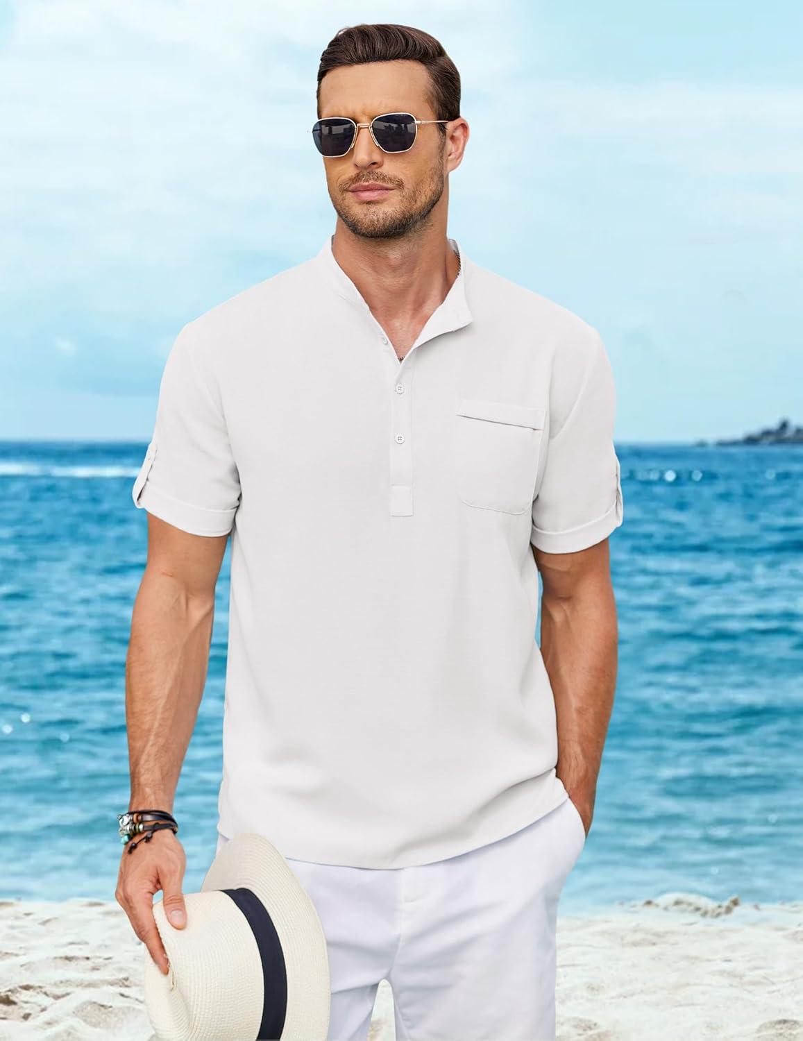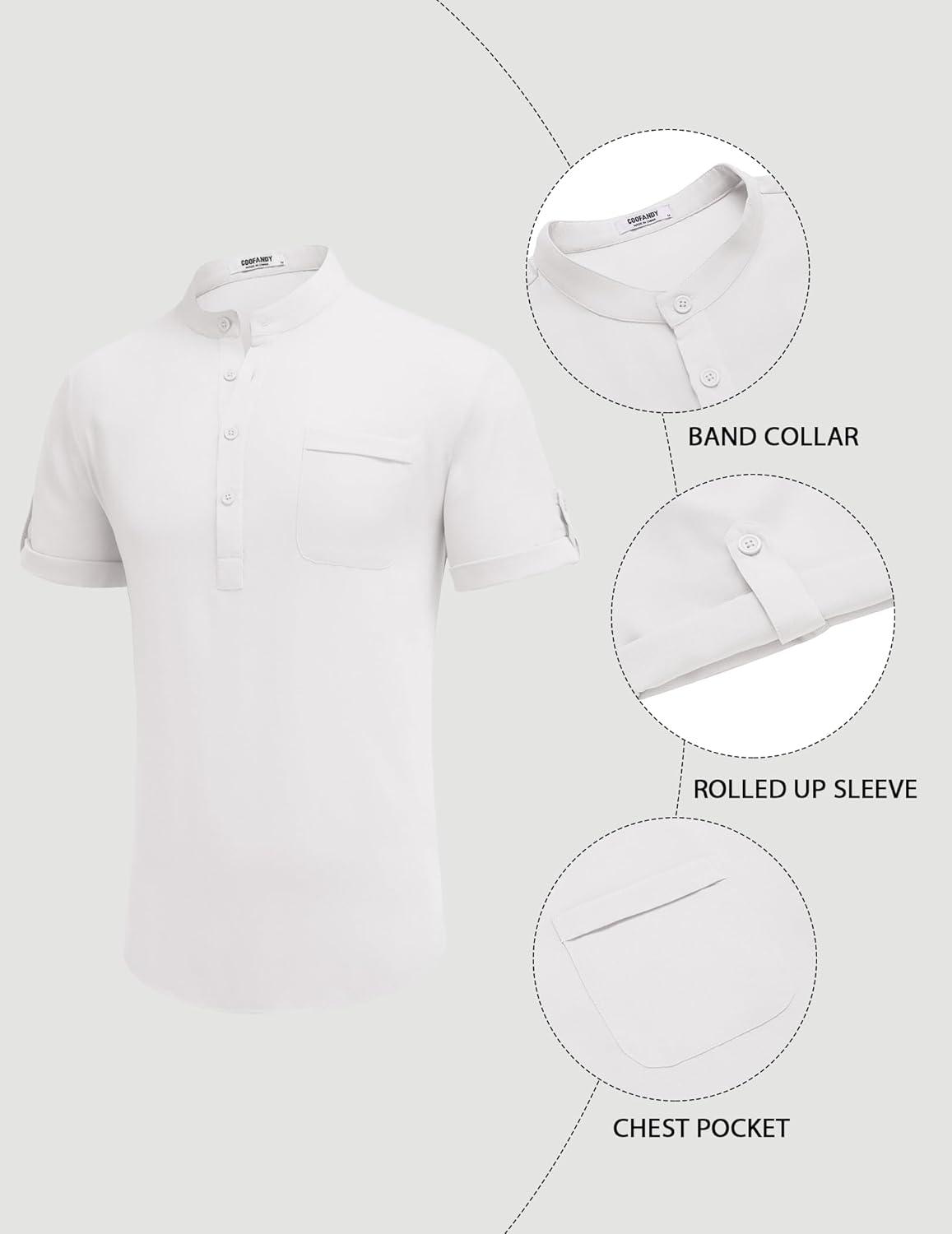 Our clearance section features the best deals on COOFANDY Henley Shirts for Men Short Sleeve Band Collar Casual Shirt Summer Hippie Vacation Beach T Shirts with Pocket(White) and accessories. Check it out now!