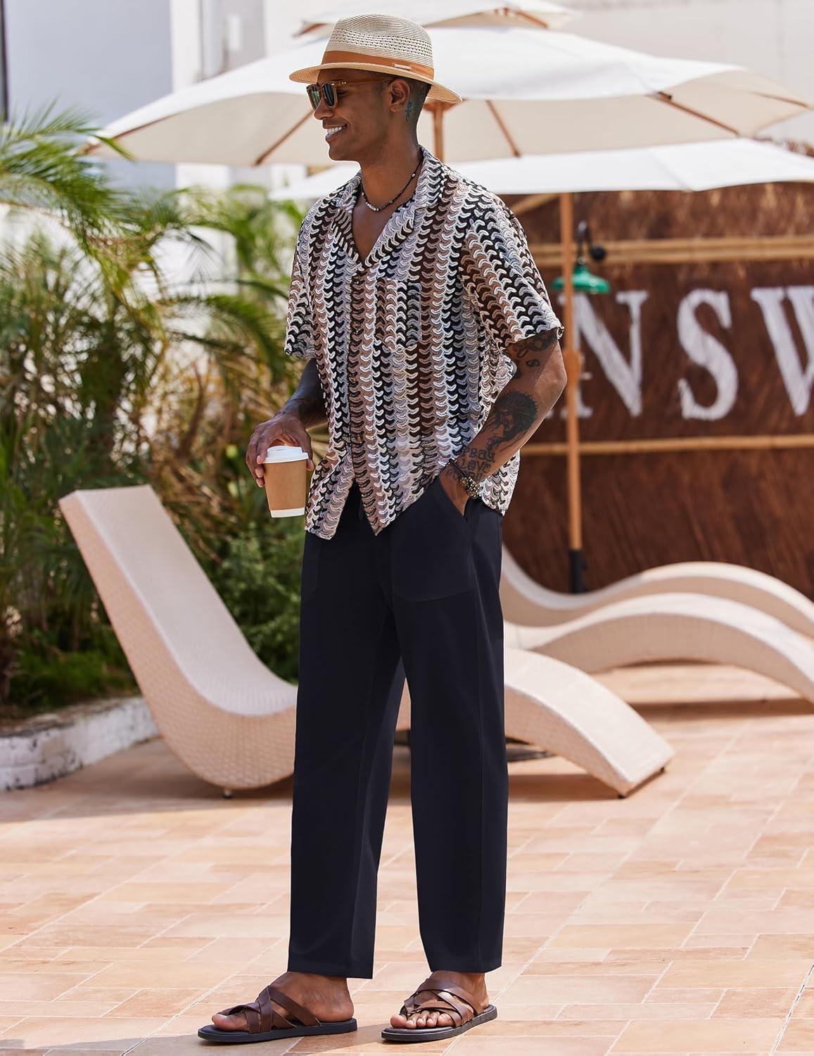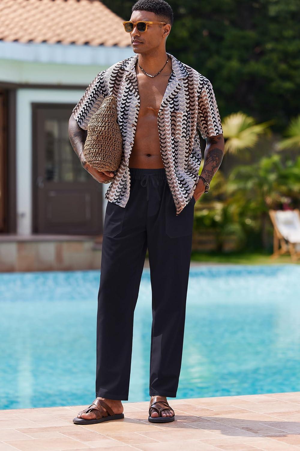 COOFANDY Linen Pants Mens Lightweight Linen Pants Elastic Waist Beach Yoga Summer Trousers(Brown)
