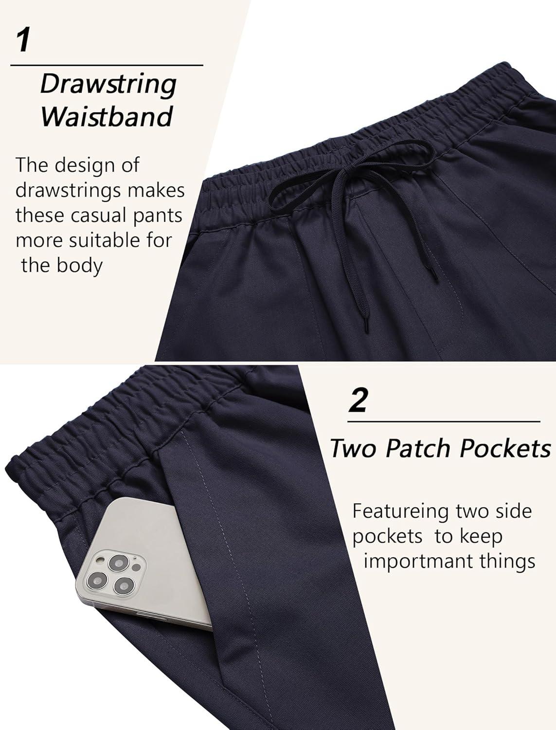 COOFANDY Linen Pants Mens Lightweight Linen Pants Elastic Waist Beach Yoga Summer Trousers(Navy Blue)