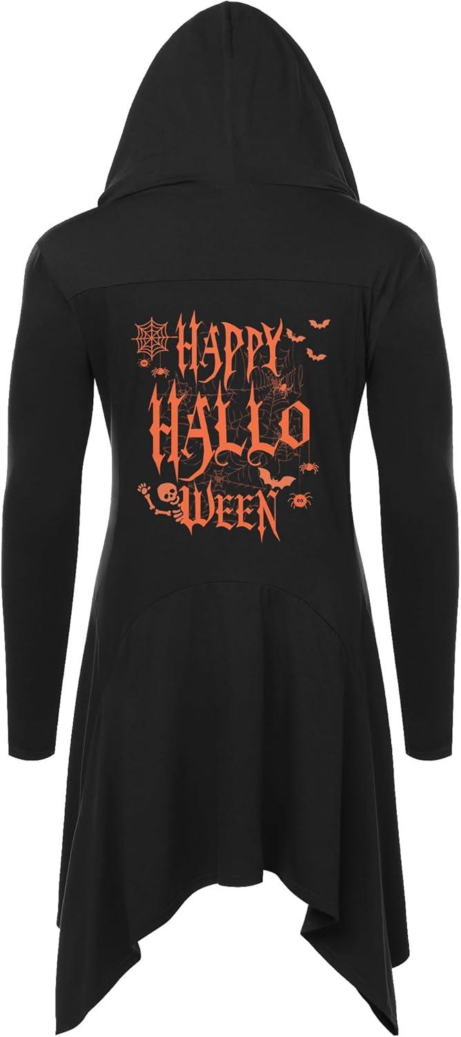 COOFANDY Long Hooded Cardigan Ruffle Shawl Collar Open Front Lightweight Drape Cape Overcoat with Pockets(Letter Printed)