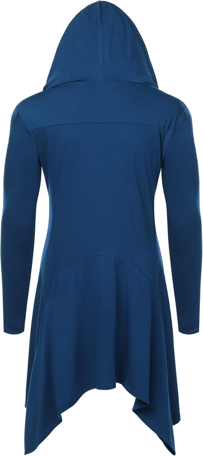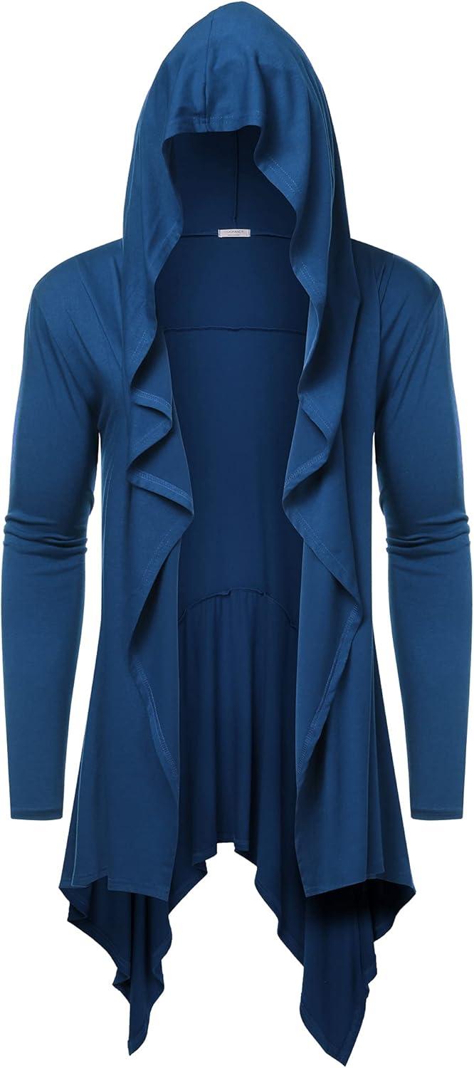 COOFANDY Long Hooded Cardigan Ruffle Shawl Collar Open Front Lightweight Drape Cape Overcoat with Pockets(Navy Blue)