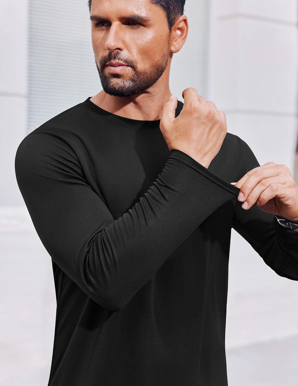 COOFANDY Long Sleeve Shirts for Men Moisture Wicking Activewear T-Shirts Sun Protection Shirts(3 Pack Black & Dark Grey & Navy Blue)