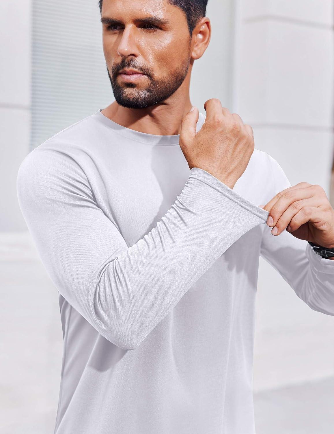 COOFANDY Long Sleeve Shirts for Men Moisture Wicking Activewear T-Shirts Sun Protection Shirts(White)