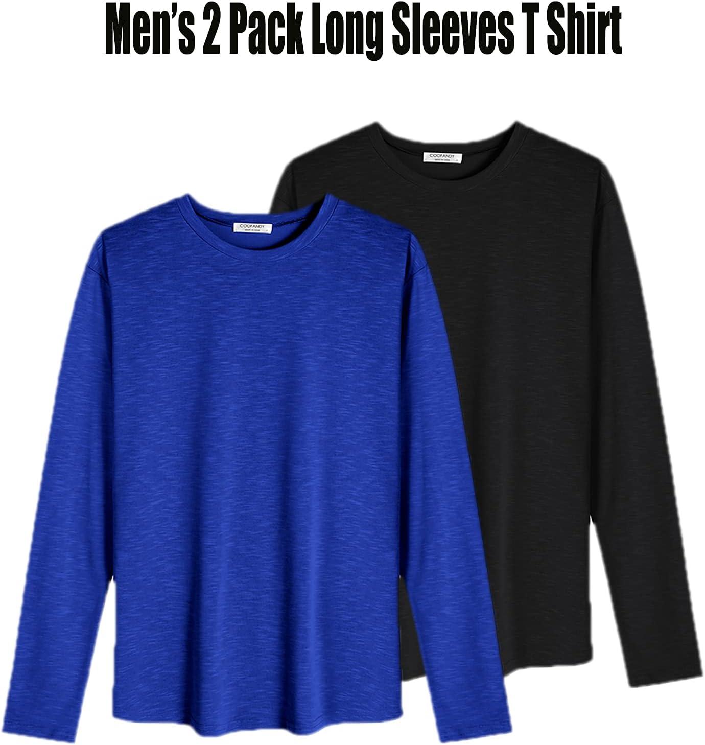 COOFANDY Men 2 Pack Muscle Fitted T Shirt Gym Workout Athletic Long Sleeves Tee(Black/Blue)