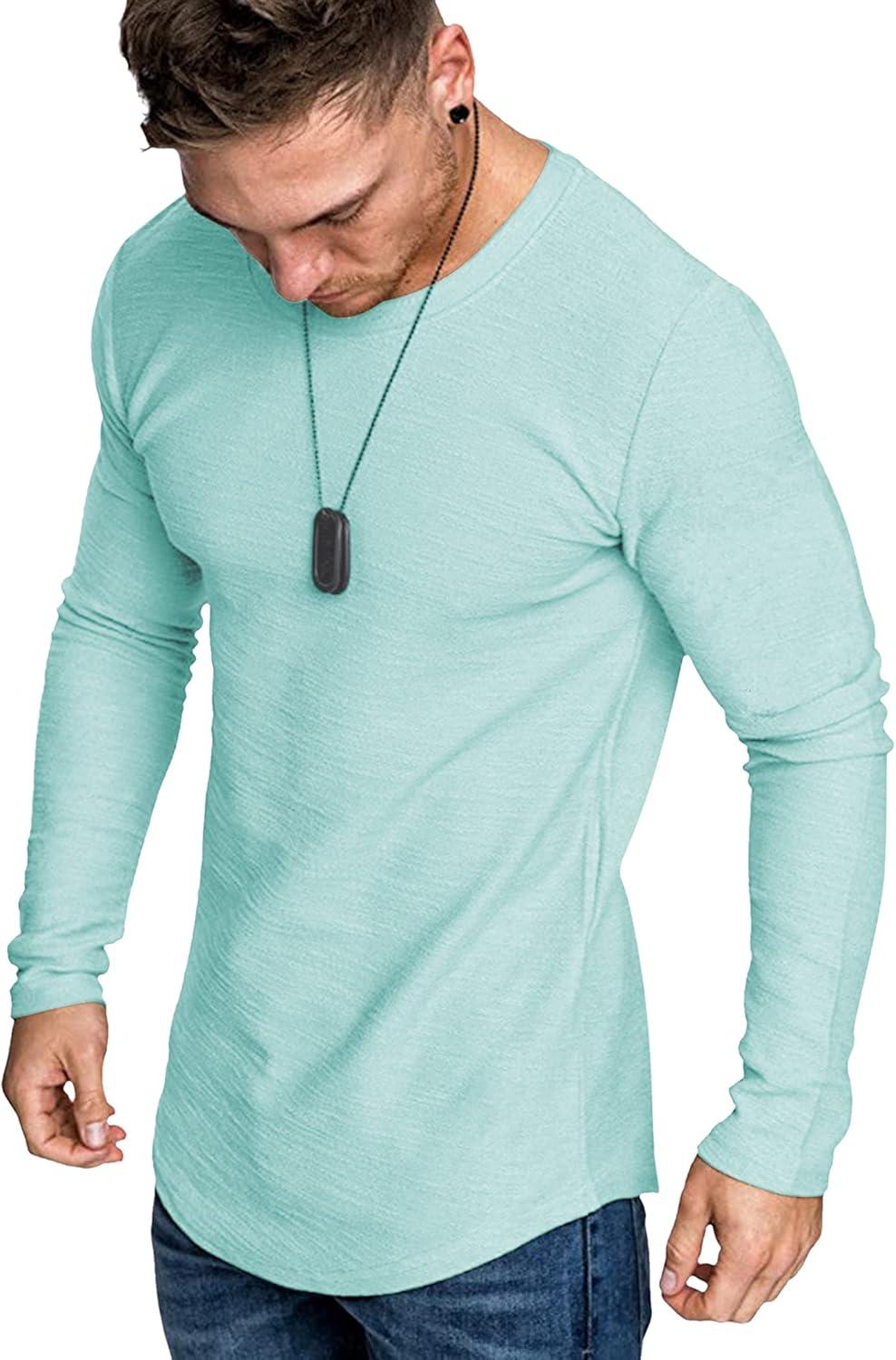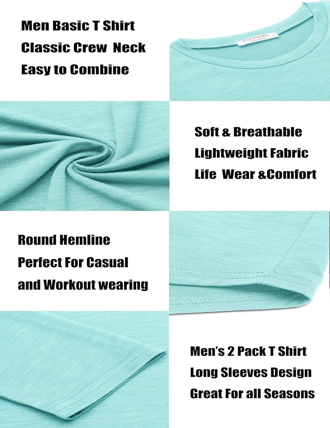COOFANDY Men 2 Pack Muscle Fitted T Shirt Gym Workout Athletic Long Sleeves Tee(Black/Mint Green)