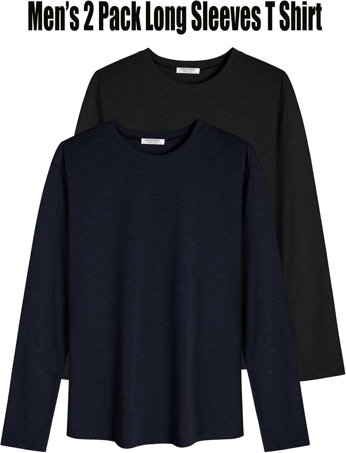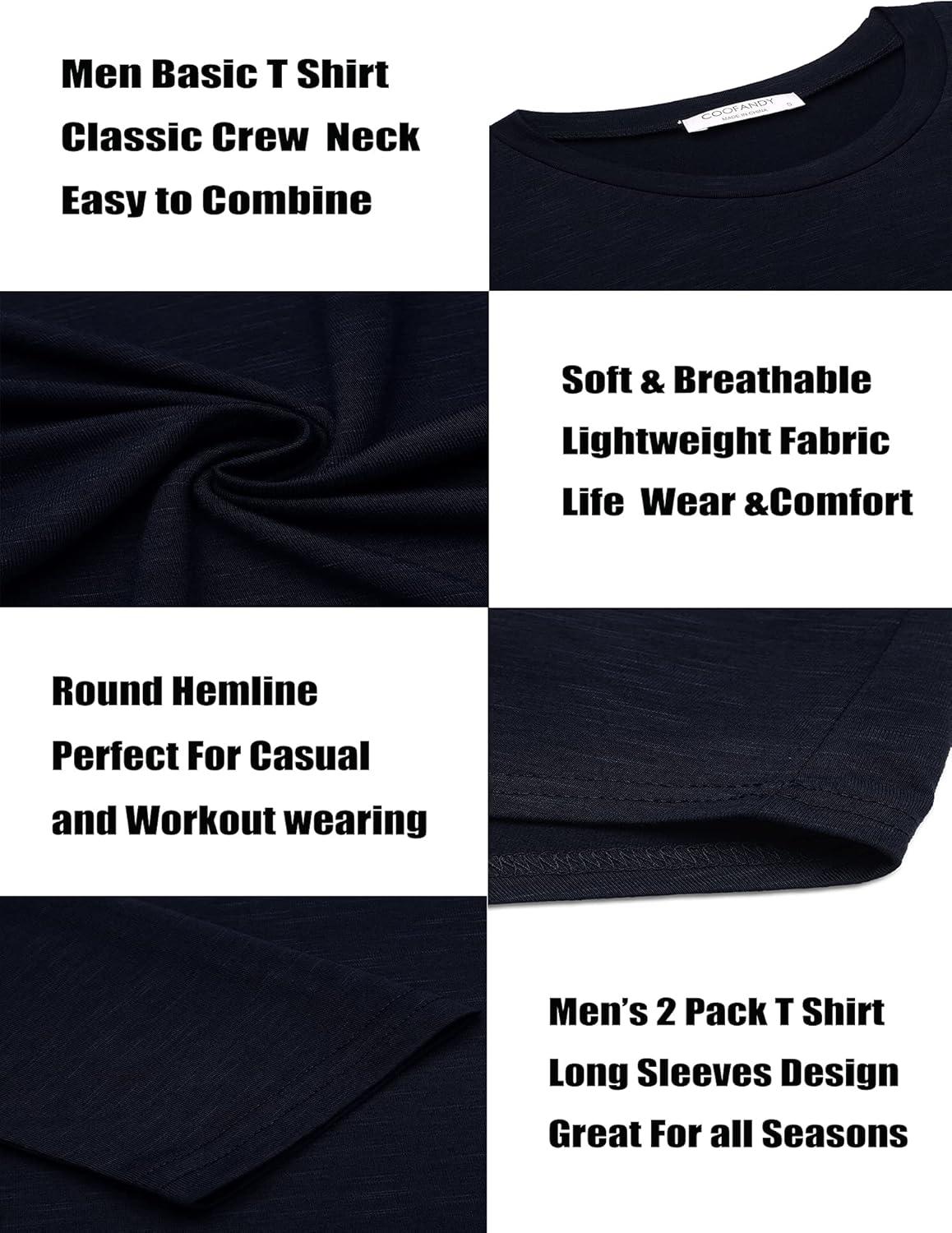 COOFANDY Men 2 Pack Muscle Fitted T Shirt Gym Workout Athletic Long Sleeves Tee(Black/Navy Blue)