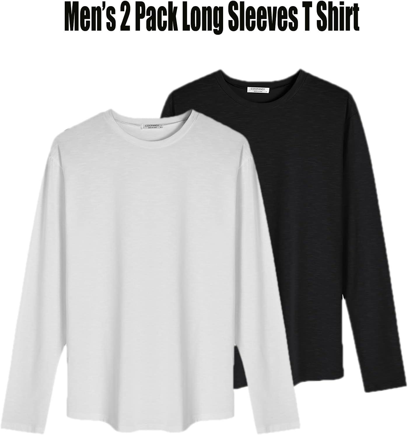 COOFANDY Men 2 Pack Muscle Fitted T Shirt Gym Workout Athletic Long Sleeves Tee(Black/White)