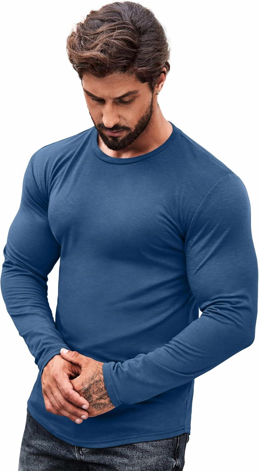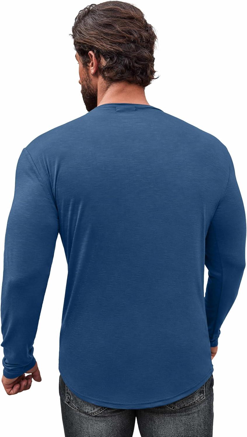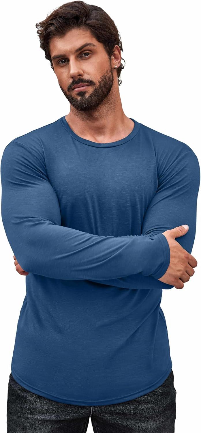 COOFANDY Men 2 Pack Muscle Fitted T Shirt Gym Workout Athletic Long Sleeves Tee(Denim Blue)