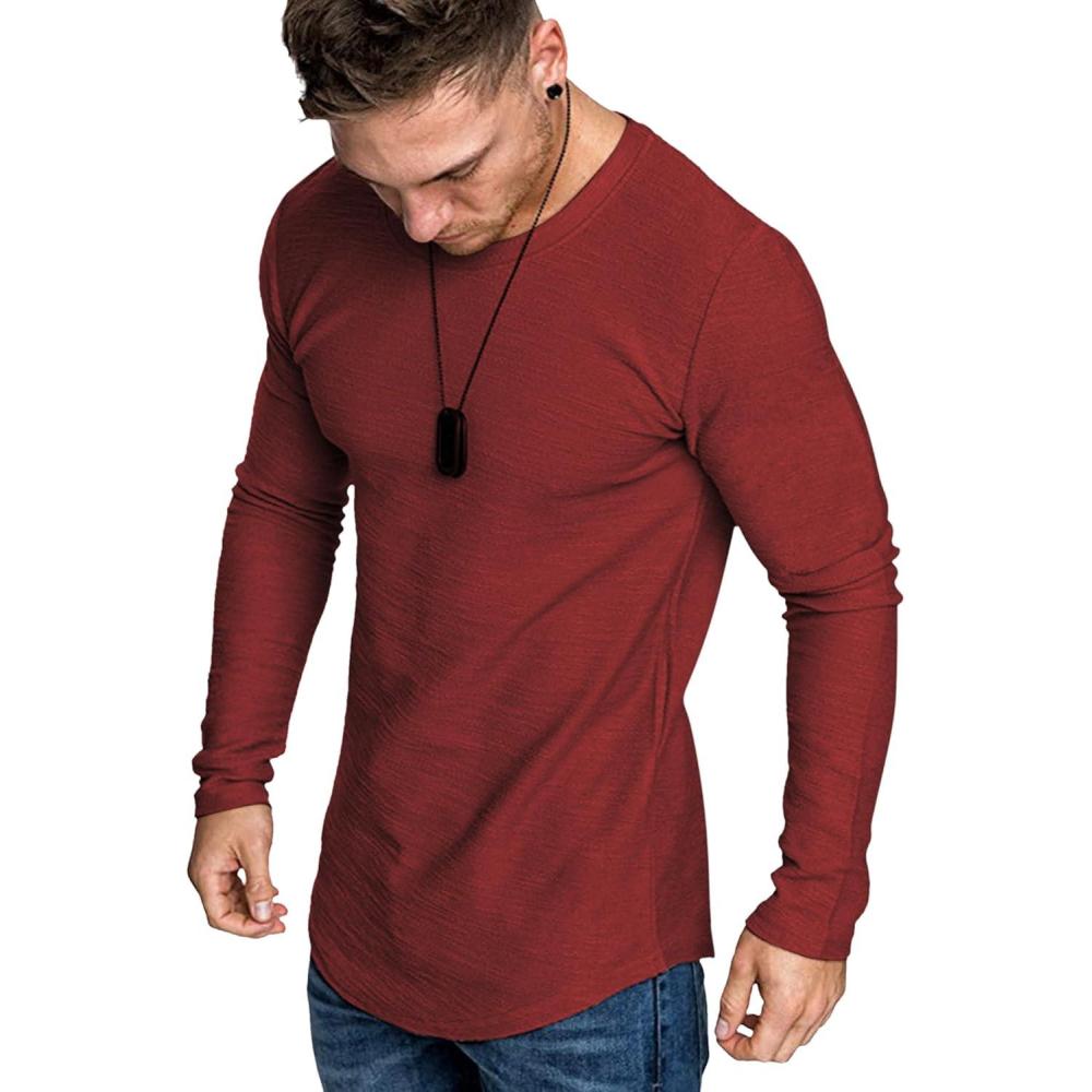 COOFANDY Men 2 Pack Muscle Fitted T Shirt Gym Workout Athletic Long Sleeves Tee(True Red)