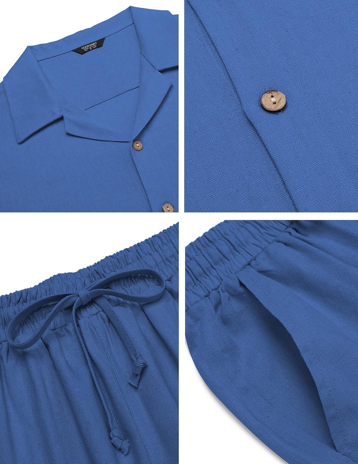imageCOOFANDY Men 2 Piece Linen Outfit Beach Button Down Shirt Casual Loose Pant SetsRoyal Blue