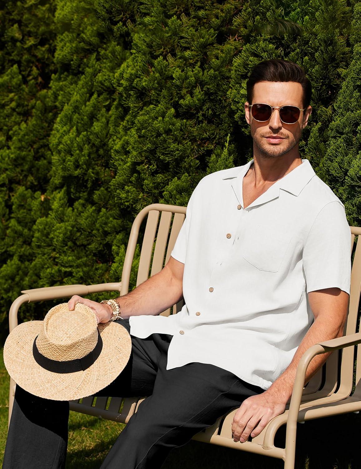 Get the COOFANDY Men 2 Piece Linen Outfit Beach Button Down Shirt Casual Loose Pant Sets(White Shirt/Black Pants) you’ve been eyeing at a discounted price during our seasonal sale event.