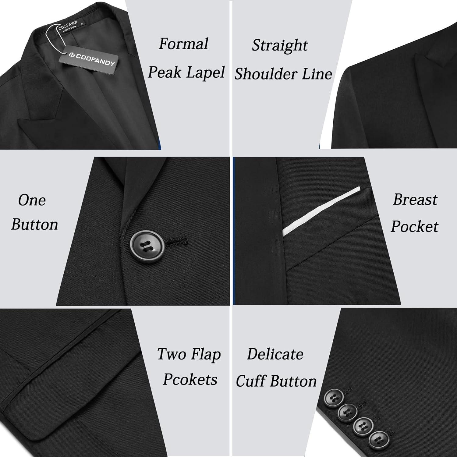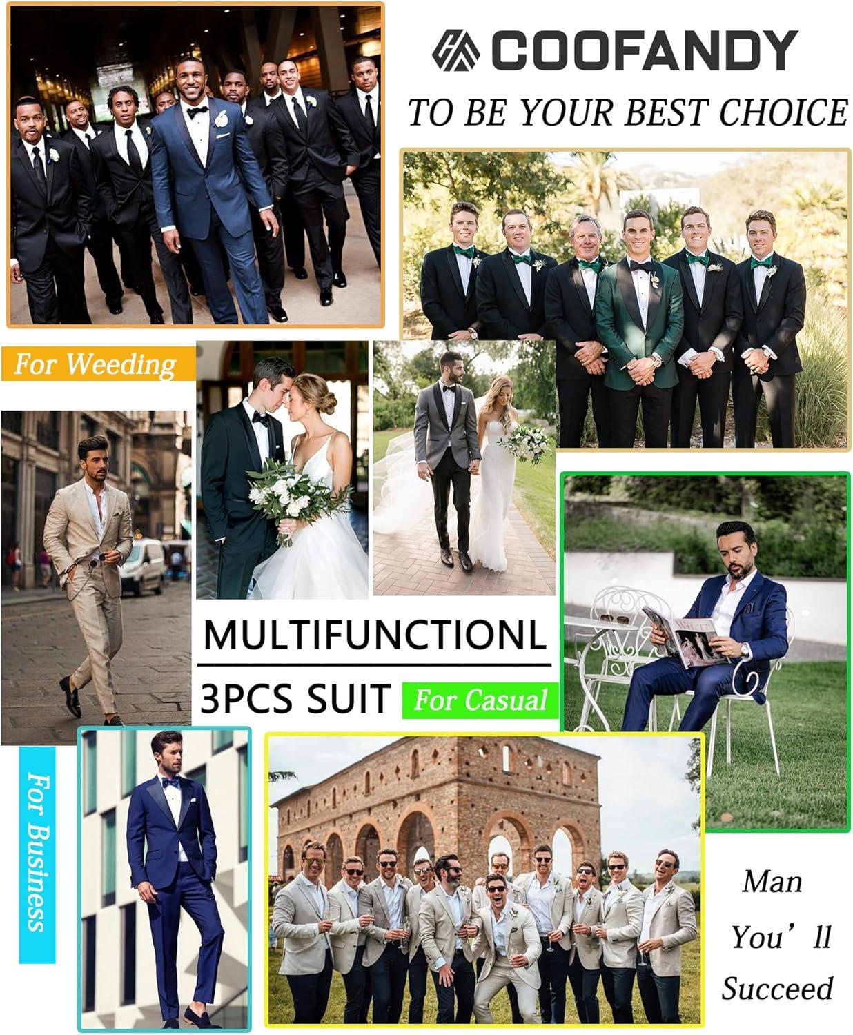 COOFANDY Mens Suits Slim Fit Tuxedo Suit Set 3 Piece Casual Suit Jacket Party Dinner Wedding Prom