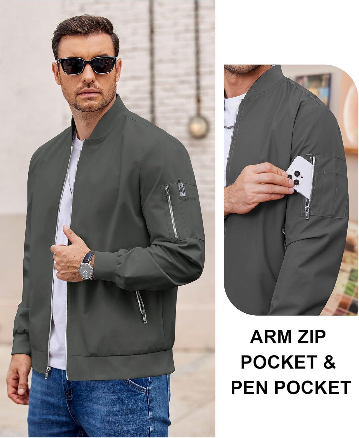 COOFANDY Men Bomber Jacket Lightweight Casual Windbreaker Zip Up Coat Fashion Stylish Fall Jackets with Pocket(Dark Grey)