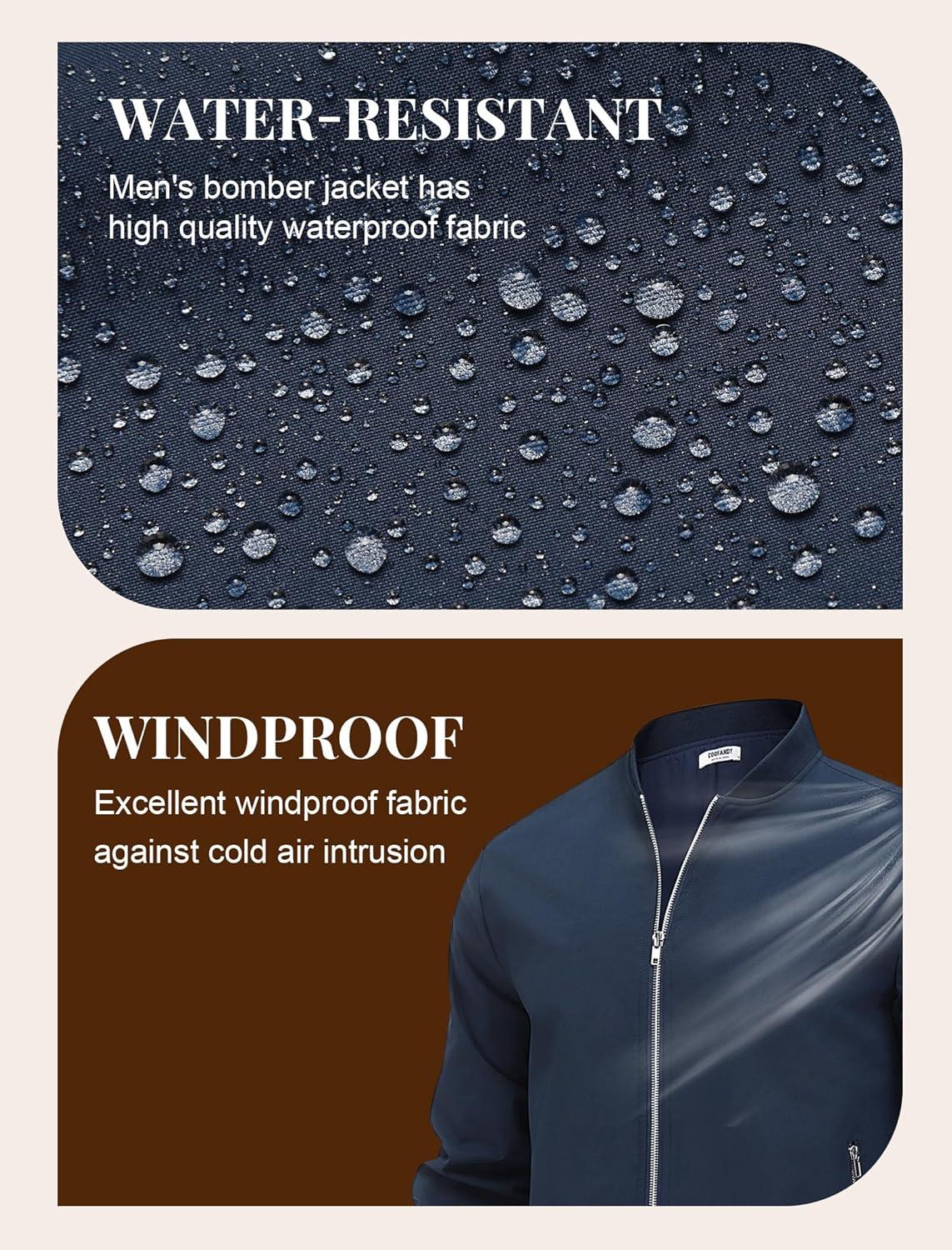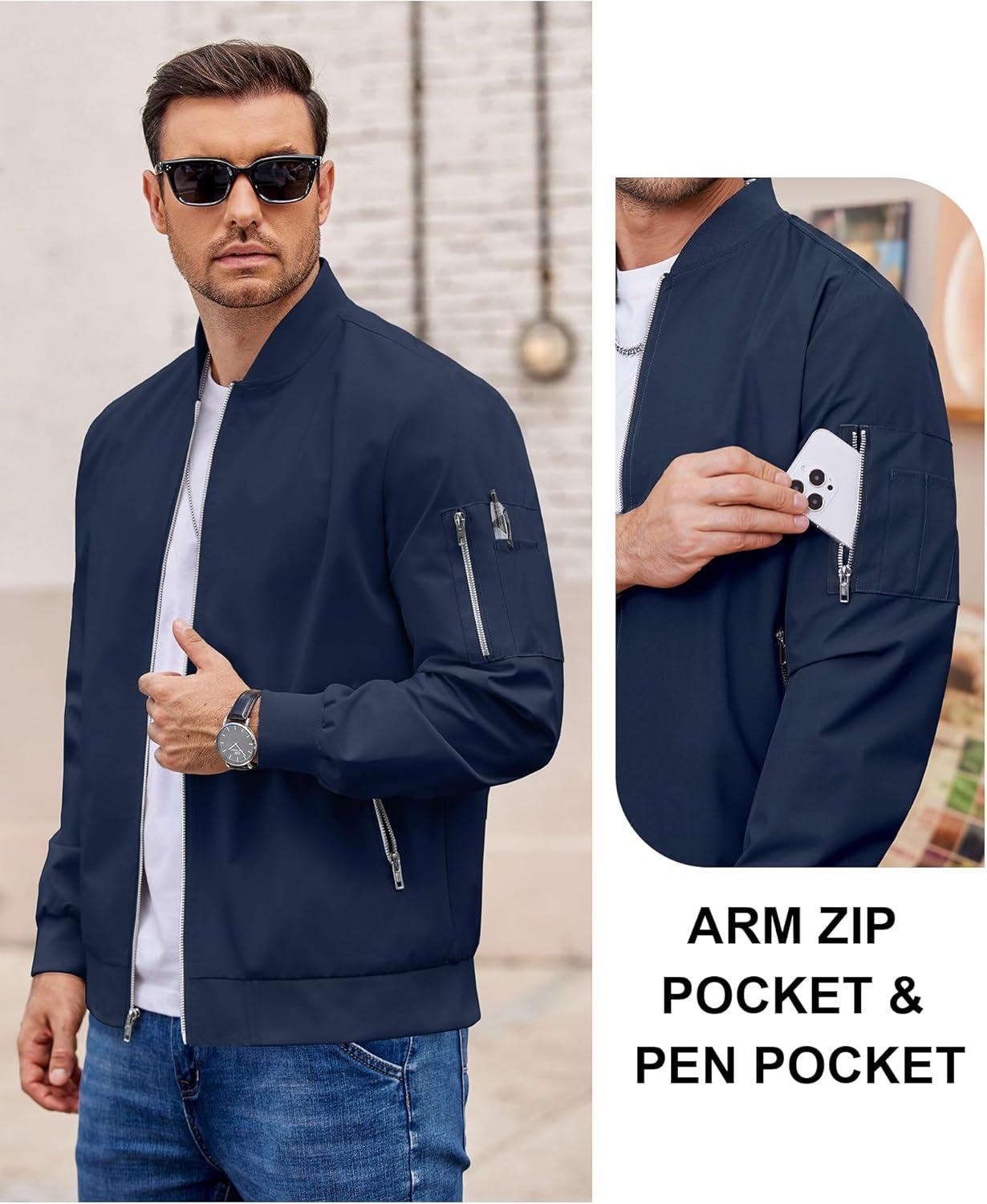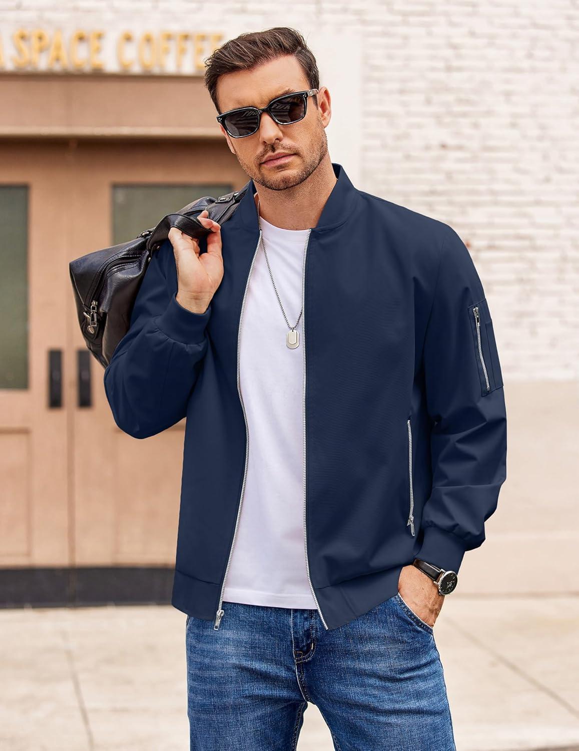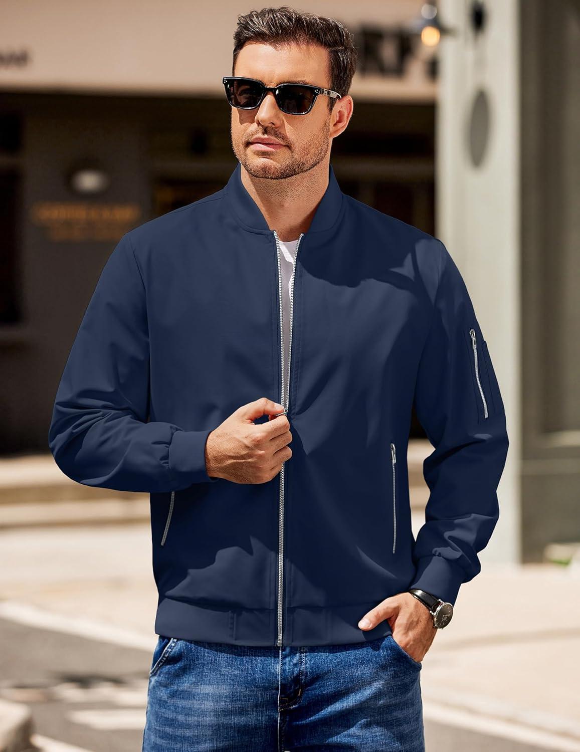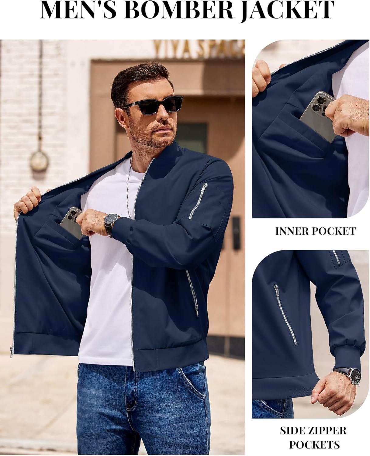 COOFANDY Men Bomber Jacket Lightweight Casual Windbreaker Zip Up Coat Fashion Stylish Fall Jackets with Pocket(Navy)
