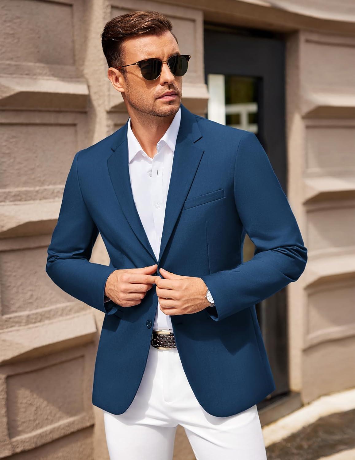 COOFANDY Men Casual Blazer Sport Coats Slim Fit Lightweight Business Two Button Suit Jackets(Blue)