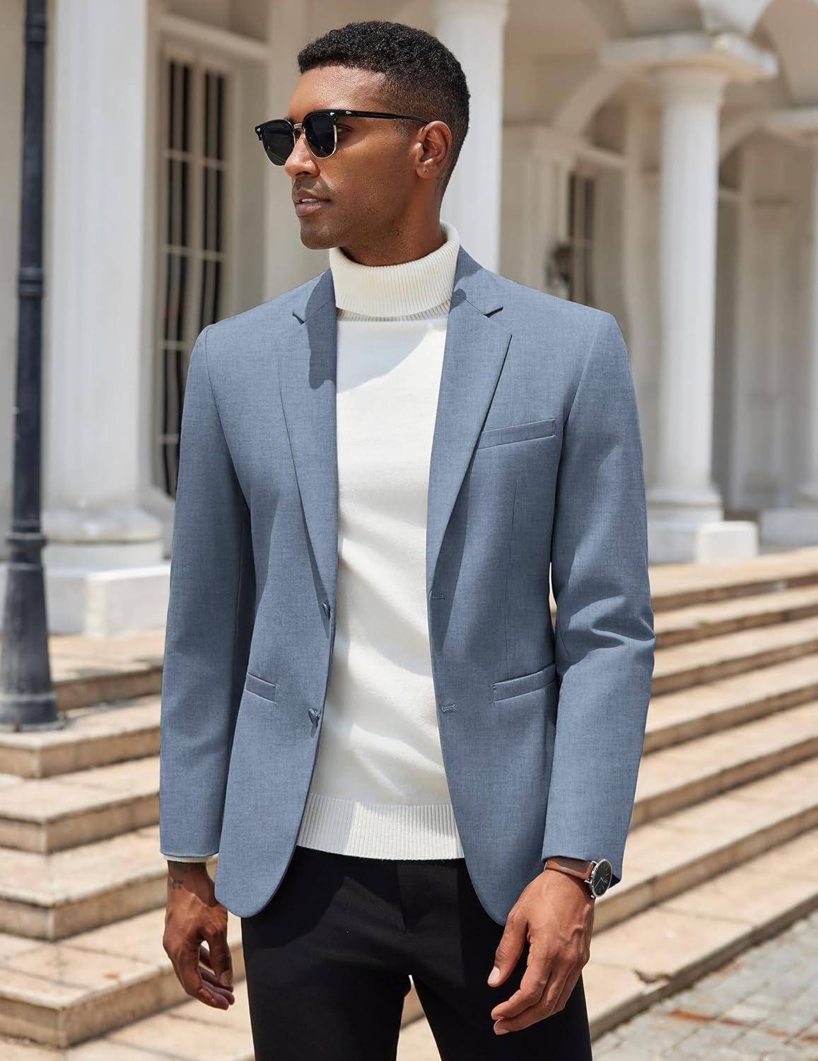 COOFANDY Men Casual Blazer Sport Coats Slim Fit Lightweight Business Two Button Suit Jackets(Grey Blue)