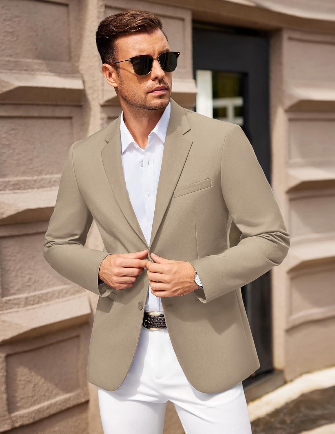 COOFANDY Men Casual Blazer Sport Coats Slim Fit Lightweight Business Two Button Suit Jackets(Khaki)