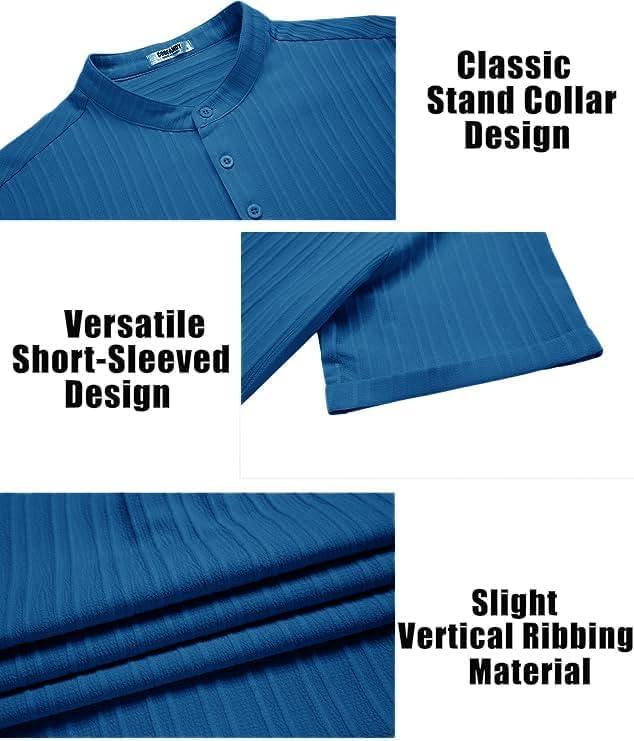 COOFANDY Men Casual Henley Tee Shirt Short Sleeve Band Collar Summer Beach Textured T-Shirt(Dark Grey)
