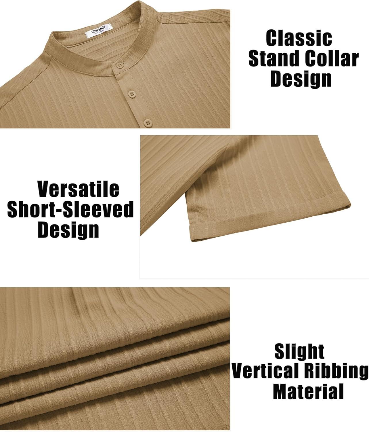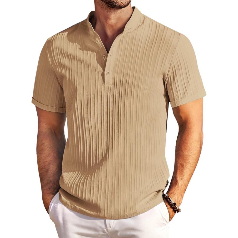 Get up to 50% off on COOFANDY Men Casual Henley Tee Shirt Short Sleeve Band Collar Summer Beach Textured T-Shirt(Khaki) styles during our spring sale event.