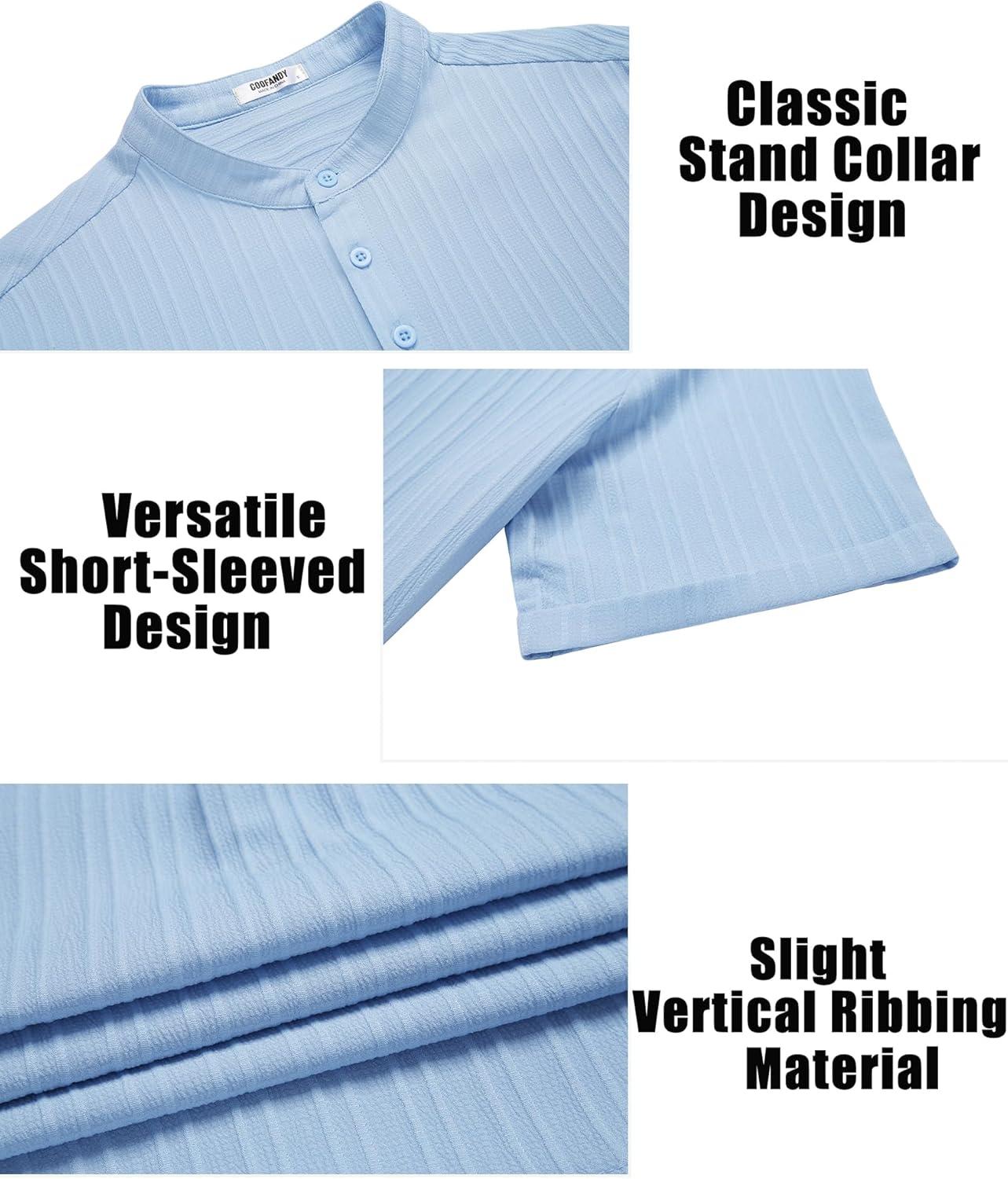 COOFANDY Men Casual Henley Tee Shirt Short Sleeve Band Collar Summer Beach Textured T-Shirt(Light Blue)