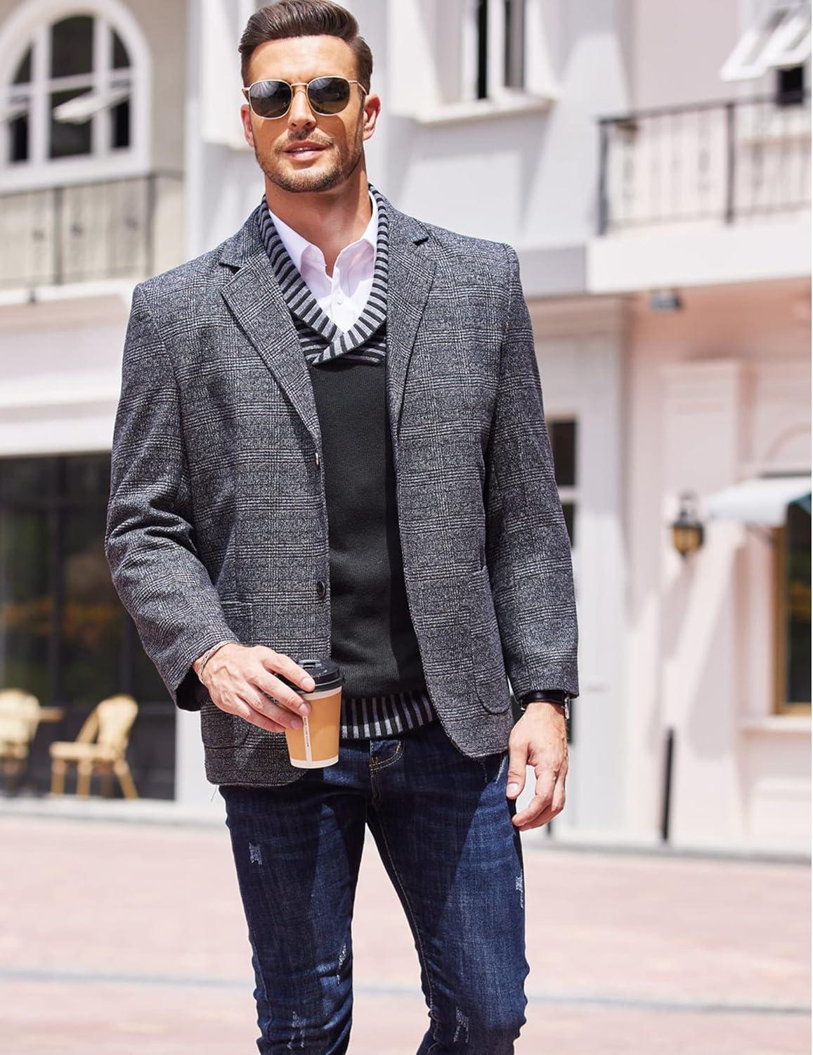 COOFANDY Men Casual Knitted Sweaters Shawl Collar Dress Sweater Long Sleeve V-Neck Pullover Tops(Dark Grey)