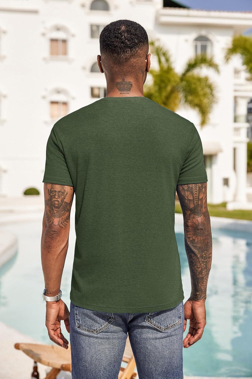 COOFANDY Men Casual Shirt Short Sleeve Summer Basic T Shirt Pocket Soild Tee Top(Dark Green)