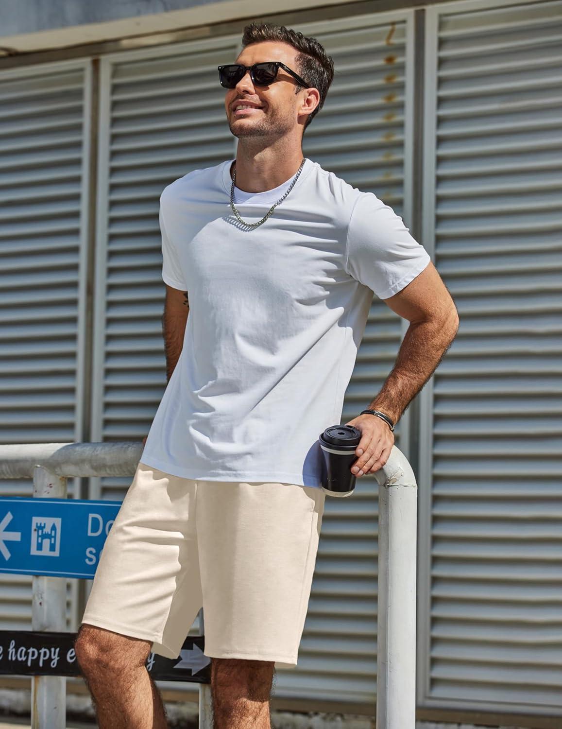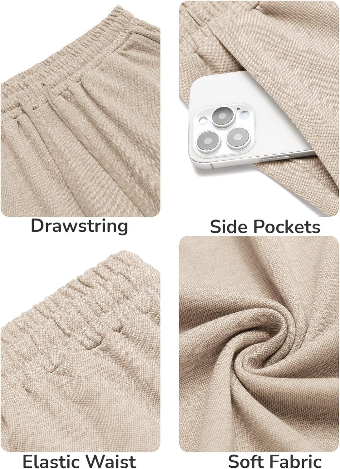 COOFANDY Men Casual Shorts Elastic Waist Drawstring Shorts Stretch Summer Beach Shorts with Pockets(Light Khaki)
