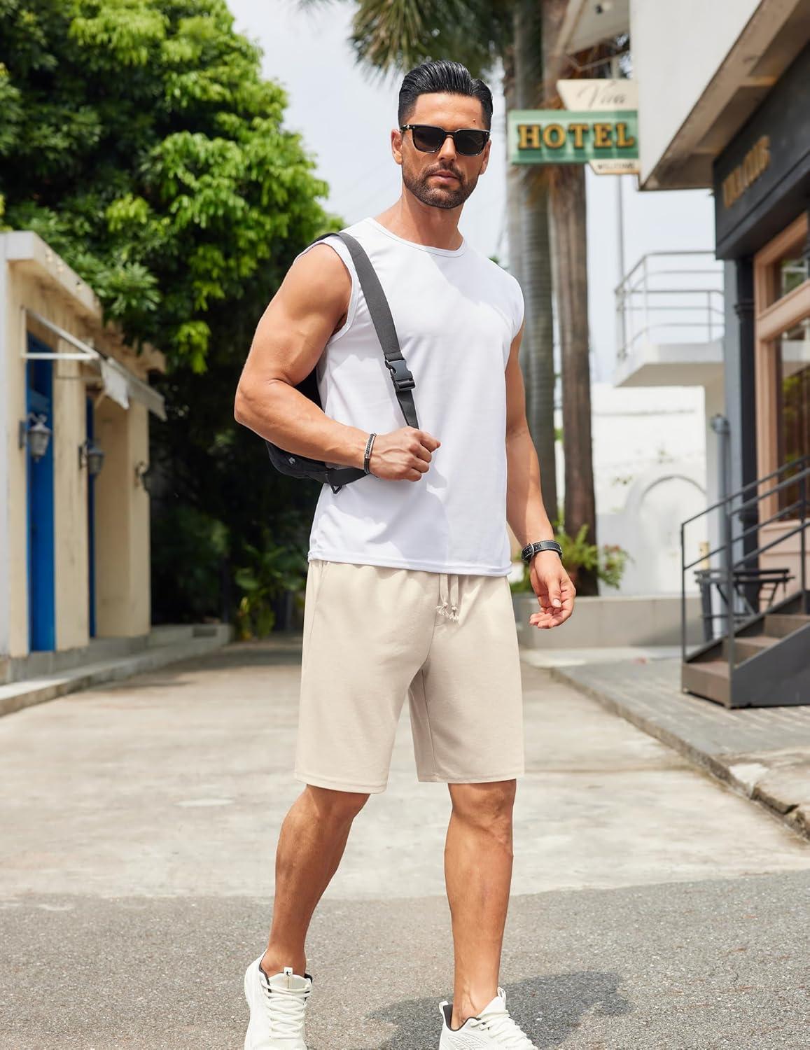 COOFANDY Men Casual Shorts Elastic Waist Drawstring Shorts Stretch Summer Beach Shorts with Pockets(Light Grey)