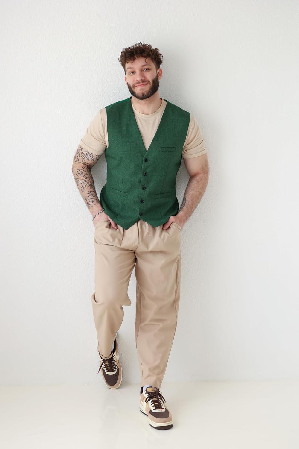 This casual suit vest is made of high-quality color-spun fabric, and the texture looks like linen. The slightly textured fabric vest makes you look less dull, and highlights your elegant temperament, making you stand out in the crowd.