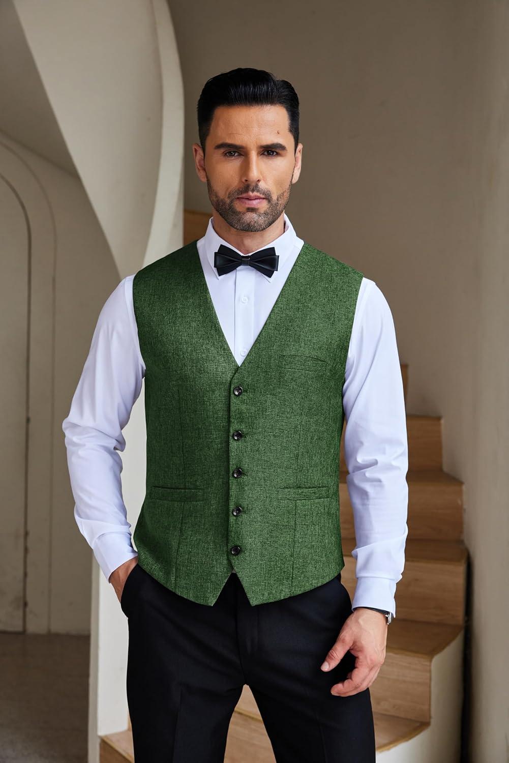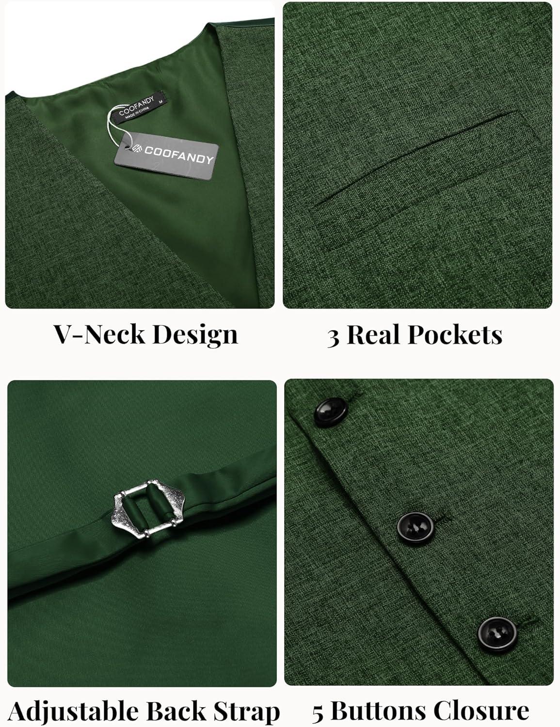 imageCOOFANDY Men Casual Suit Vest Formal Dress Vest Slim Fit Waistcoat Business WeddingGreen